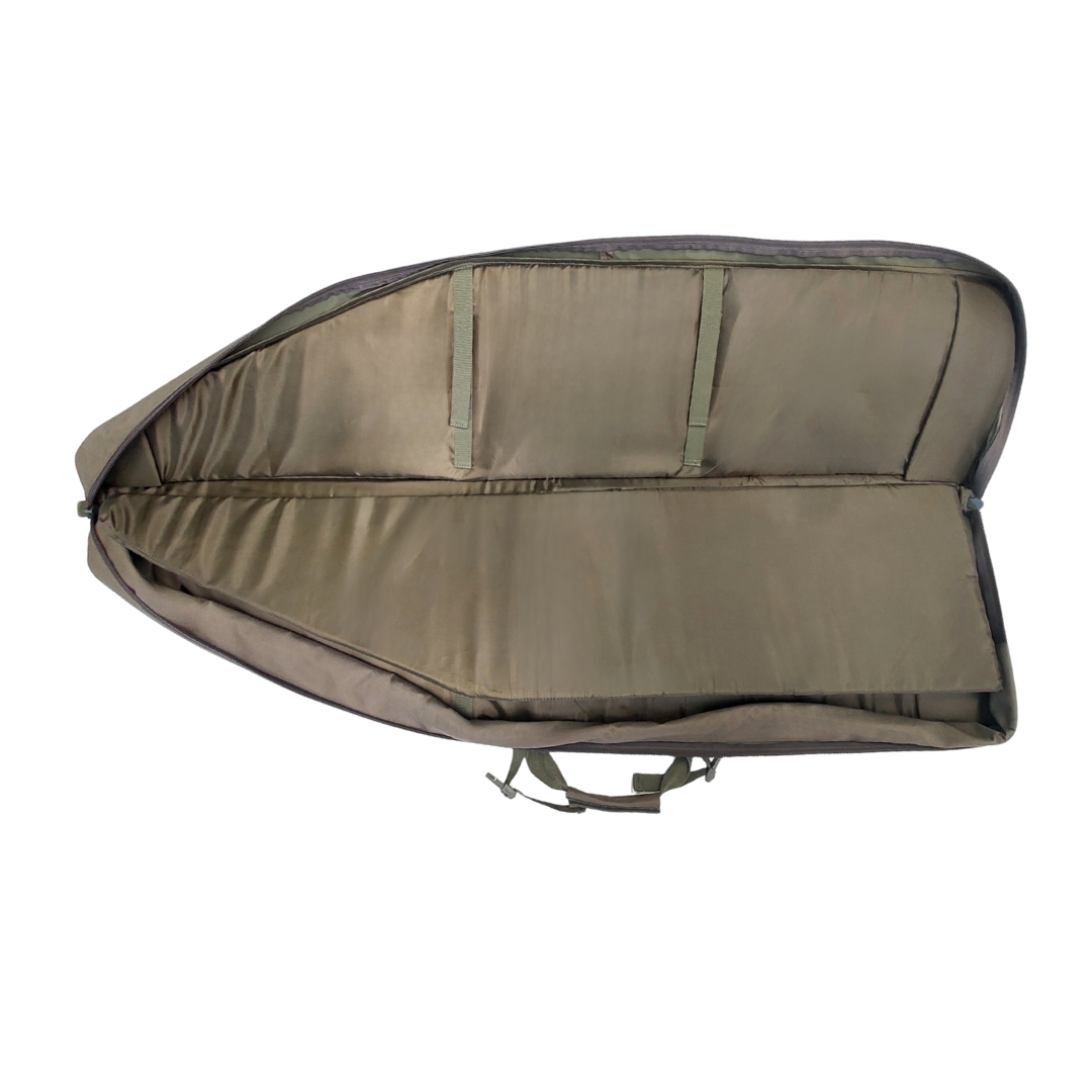 Wnętrze futerału zostało dobrze wyściełane, co chroni broń przed wstrząsami i zarysowaniami. Dodatkowo wewnętrzne paski stabilizujące zapobiegają przesuwaniu się broni podczas transportu. Futerał posiada również pojemne kieszenie zewnętrzne, które umożliwiają wygodne przechowywanie akcesoriów, takich jak amunicja, pas nośny czy dokumenty.