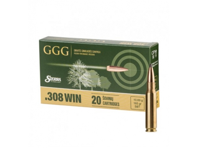 GGG kal .308 Win 165 gr/10,69 g Sierra SBT to amunicja karabinowa w kalibrze .308 Win z pociskiem typu SBT.