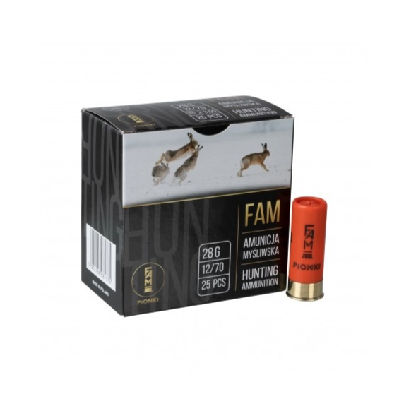 Amunicja myśliwska kalibru 12/70, z 28 gramowym ładunkiem prochowym oraz śrutem o średnicy 2-3,50 mm, przeznaczona do polowania na zające. Posiada gilzę zamykaną plastikową przybite, z mosiężnym okuciem o wysokości 16 mm.