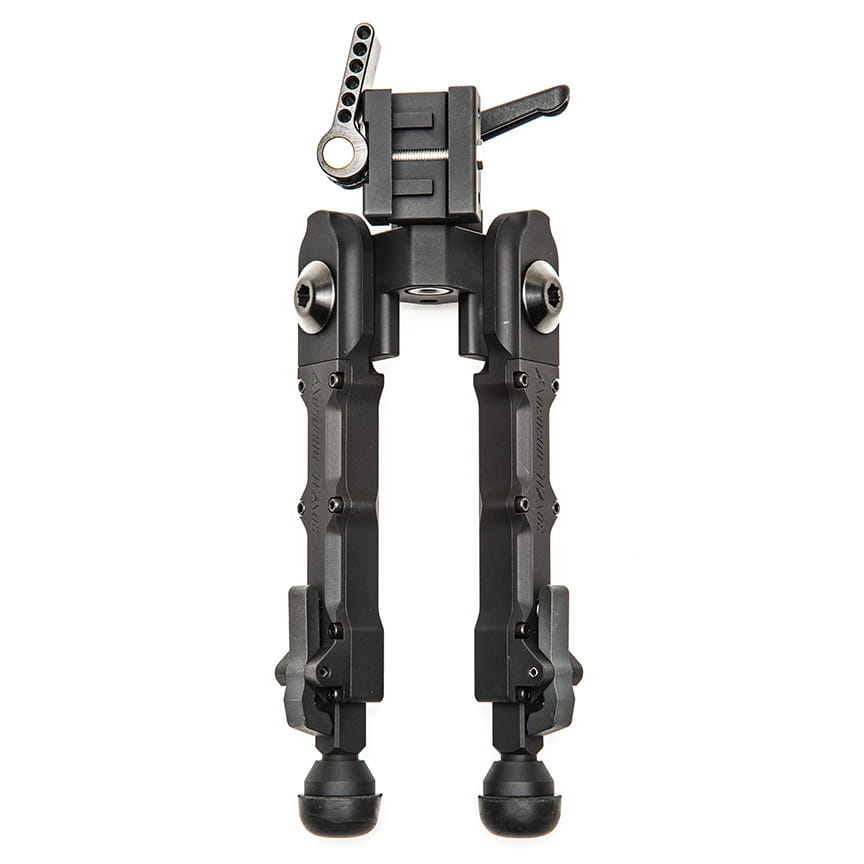 Montaż QD jest prosty, szybki i bardzo pewny. Montaż możemy zamontować na szynie standardu 1913 Picatinny. System pozwala strzelcowi na błyskawiczne dostosowanie wysokości podparcia z możliwością ustawienia nóg niezależnie od siebie. Dodatkowo zastosowano regulację pochylenia bocznego z wygodnym ramieniem umożliwiającym stabilne przybranie idealnej postawy.