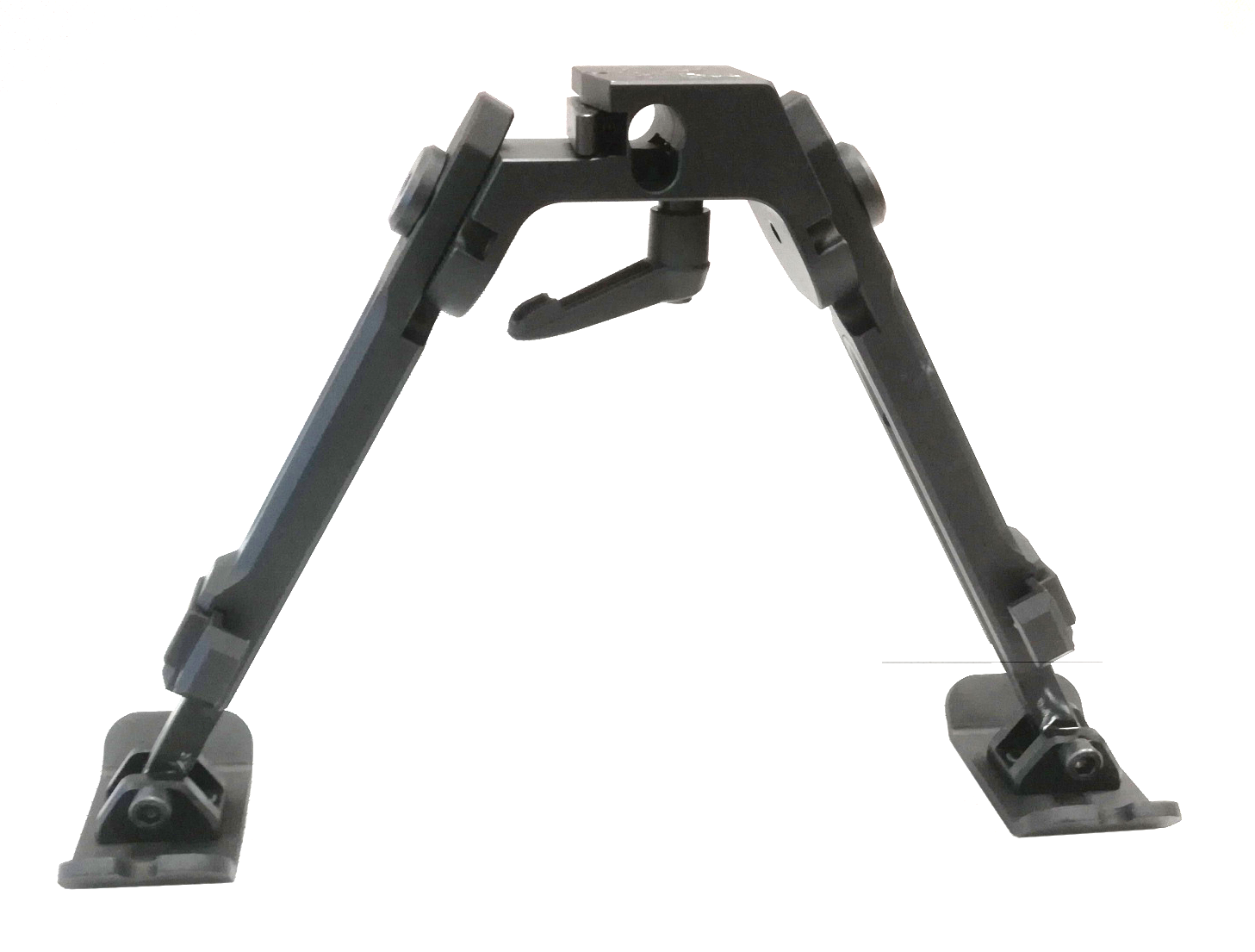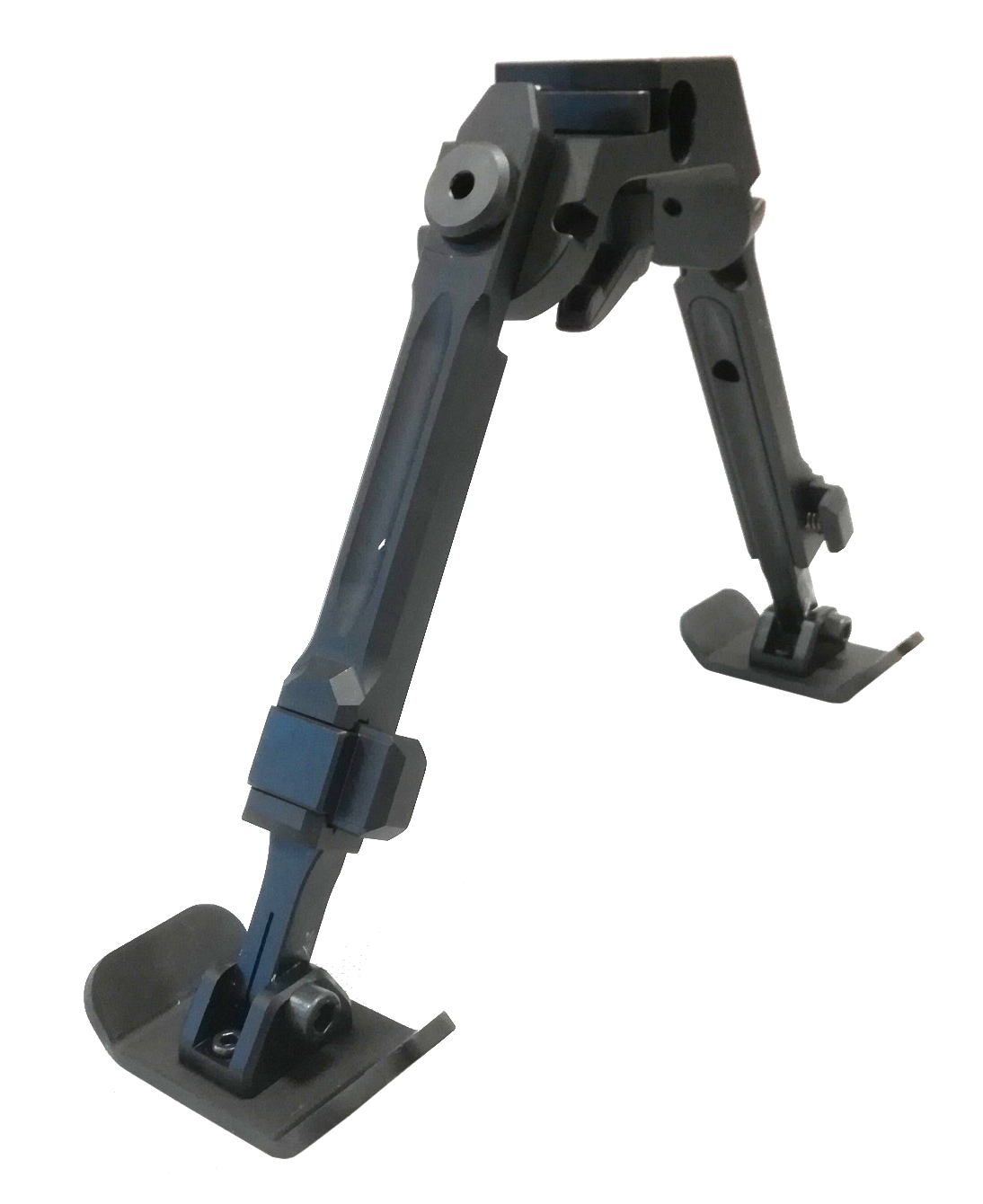 Bipod mocowany do trzpienia równoległego do lufy, znajdującego się pod nią. Solidnie wykonany, sztywny i stabilny. Składany do przodu. Posiada regulację wysokości w zakresie: 171mm - 209mm (mierząc do górnej krawędzi bipodu, która w przypadku zastosowania adaptera na Picatinny Fortmeier odpowiada dolnej krawędzi szyny Picatinny). Bipod pozwala na nieznaczne uchylanie na boki (w osi równoległej do lufy) z blokadą.