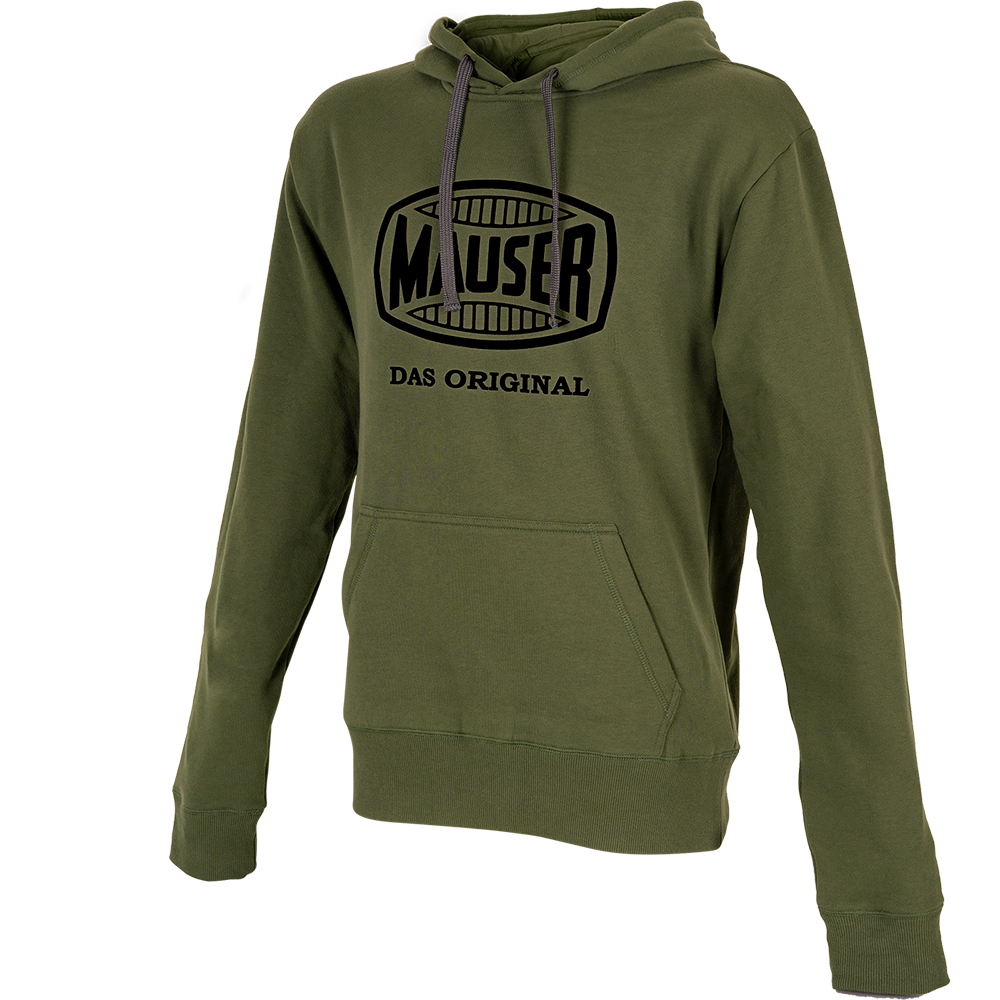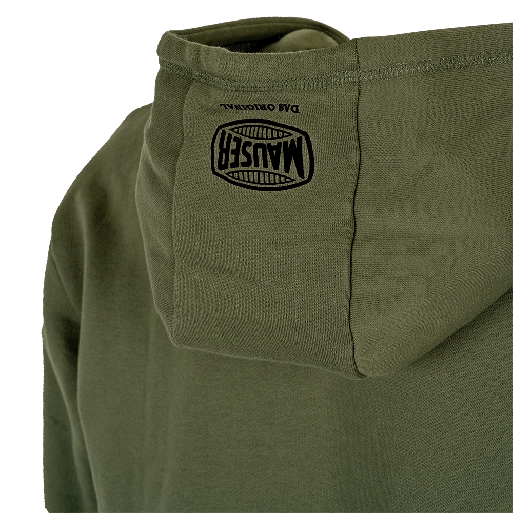 Bluza z kapturem MAUSER absolutnie przyciągająca wzrok: oliwkowa bluza Mauser z czarnym logo marki. Ta wygodna bluza z kapturem, jest nie tylko idealna na polowanie, ale jej fason wygląda również fajnie na szlaku myśliwskim w połączeniu z dżinsami i swobodnym strojem rekreacyjnym.