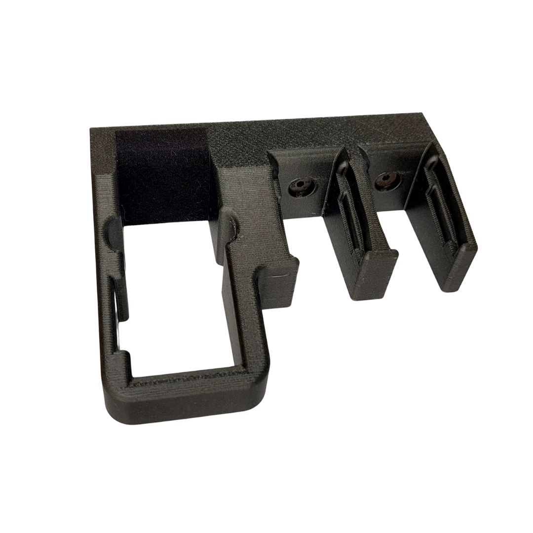 Uchwyty / wieszaki pomieszczą/utrzymają także w pełni naładowane magazynki i broń. Wszystkie wymiary są dokładnie przemyślane aby utrzymać magazynki / broń stabilnie. Uchwyty wykonane są z bardzo wytrzymałego tworzywa.