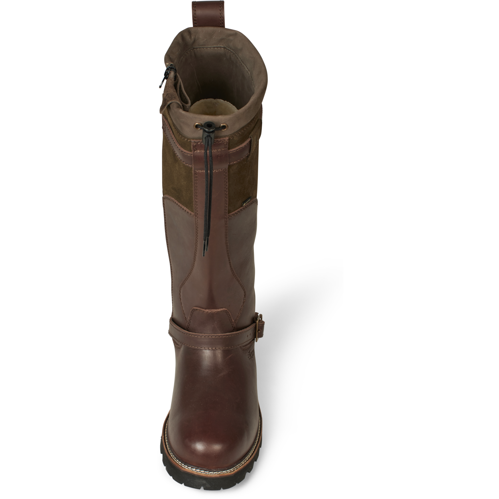 Visent 2.0 GTX to klasyczny, wysokiej jakości but myśliwski wykonany ze skóry i nubuku, zaprojektowany na zimne warunki. Posiada wysoki kołnierz o wysokości 40 cm, co zapewnia doskonałą ochronę przed warunkami atmosferycznymi oraz komfort użytkowania. Dzięki pętelce na pięcie, but jest łatwy do zakładania i zdejmowania. Wyposażony jest w kopyto z systemem „rolling last” oraz podeszwę z gumy Vibram, która gwarantuje wyjątkową przyczepność. Śródpodeszwa z pianki EVA amortyzuje wstrząsy, a membrana GORE-TEX zapewnia ciepło i wodoodporność. Elementy, które nie nasiąkają wodą oraz pełnoziarnista skóra sprawiają, że but jest wyjątkowo trwały, idealny na niepogodę.