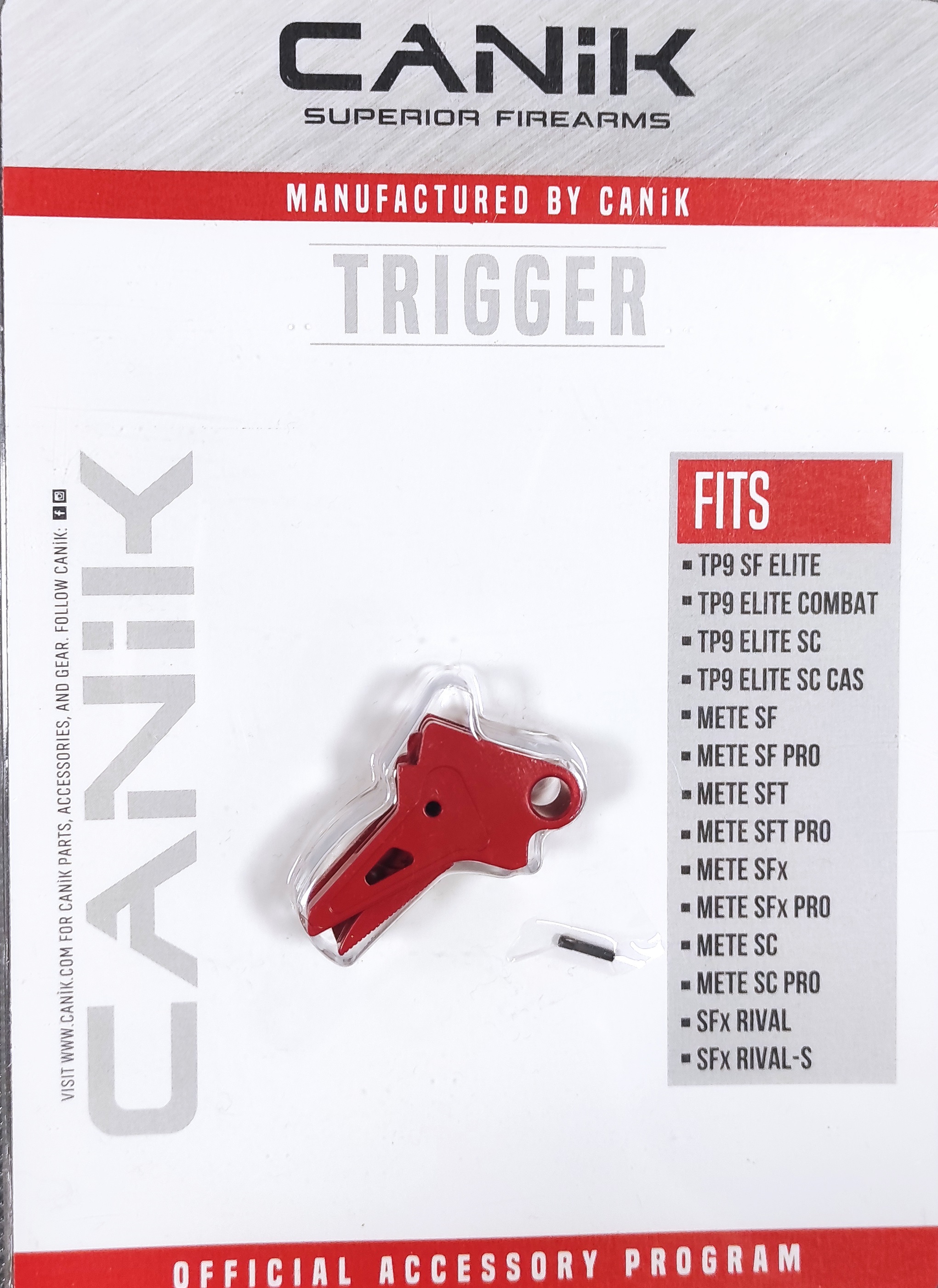 PŁASKI ALUMINIOWY SPUST ZAPROJEKTOWANY I WYKONANY PRZEZ FIRMĘ CANIK STOSOWANY W PISTOLETACH TP9 ELITE COMBAT. ZAPEWNIA SZYBSZE STRZELANIE I LEPSZĄ PRACĘ.• WYSOKA TECHNOLOGIA WYKONANIA CNC,
