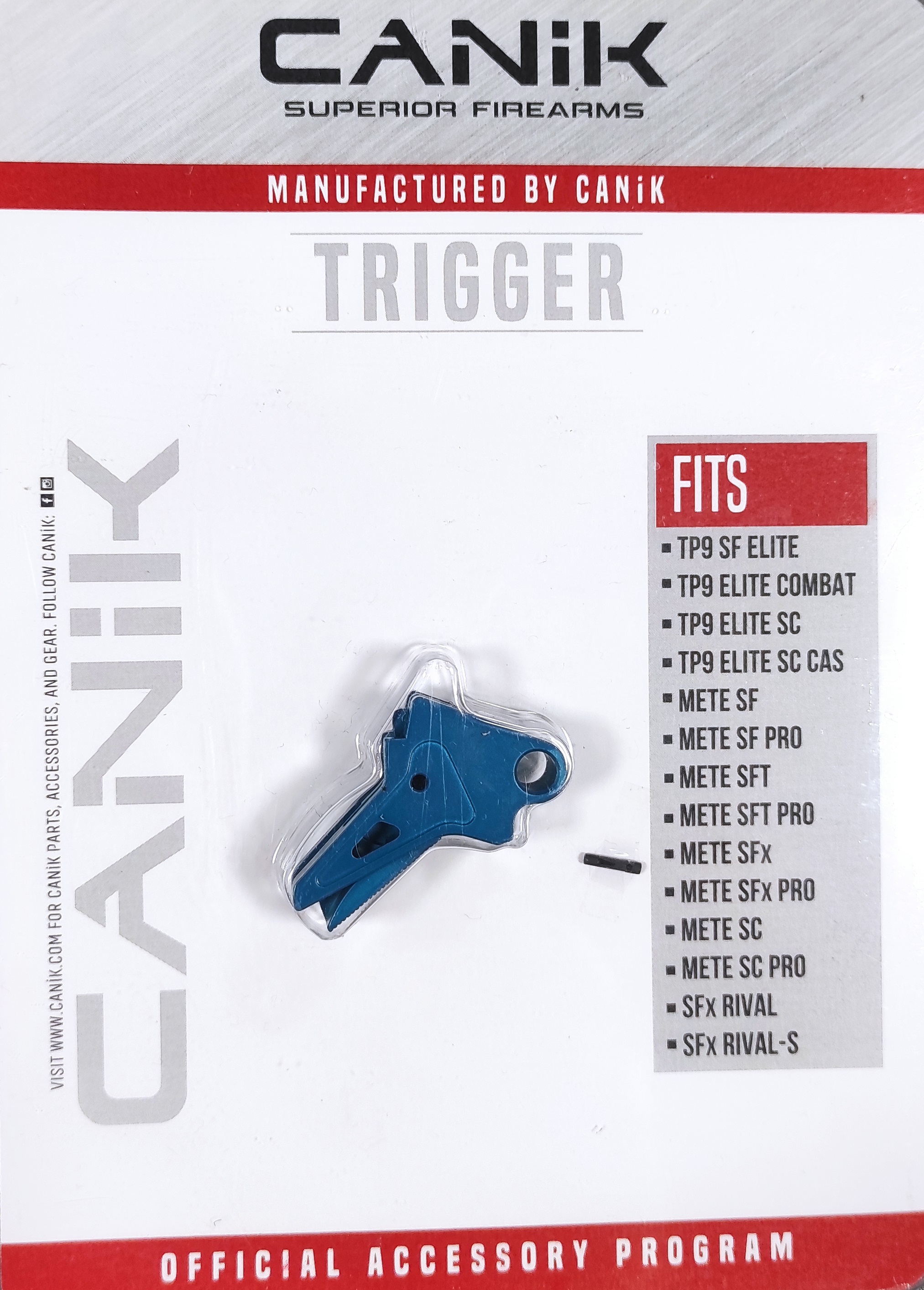 PŁASKI ALUMINIOWY SPUST ZAPROJEKTOWANY I WYKONANY PRZEZ FIRMĘ CANIK STOSOWANY W PISTOLETACH TP9 ELITE COMBAT. ZAPEWNIA SZYBSZE STRZELANIE I LEPSZĄ PRACĘ.• WYSOKA TECHNOLOGIA WYKONANIA CNC,