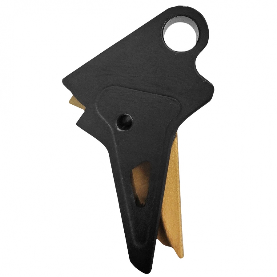 PŁASKI ALUMINIOWY SPUST ZAPROJEKTOWANY I WYKONANY PRZEZ FIRMĘ CANIK STOSOWANY W PISTOLETACH TP9 ELITE COMBAT. ZAPEWNIA SZYBSZE STRZELANIE I LEPSZĄ PRACĘ.• WYSOKA TECHNOLOGIA WYKONANIA CNC,