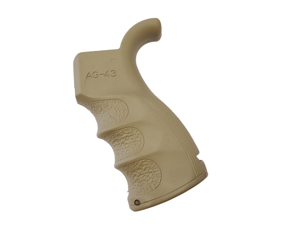 Chwyt pistoletowy FAB Defense AG-43 cechujący się ergonomiczną konstrukcją z teksturowaniem o wysokiej przyczepności i odpowiedniej wentylacji.