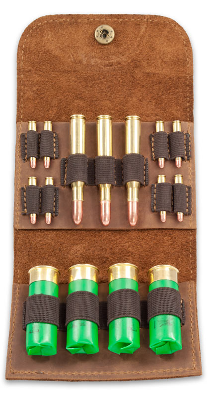 Wykonane ze skóry typu pull-up etui, na 4 szt. amunicji śrutowej i 11 szt. amunicji kulowej. Elastyczne fałdy umożliwiają przechowywanie amunicji o różnym kalibrze. Zapinane na zatrzask. Posiada możliwość zamocowania do paska.