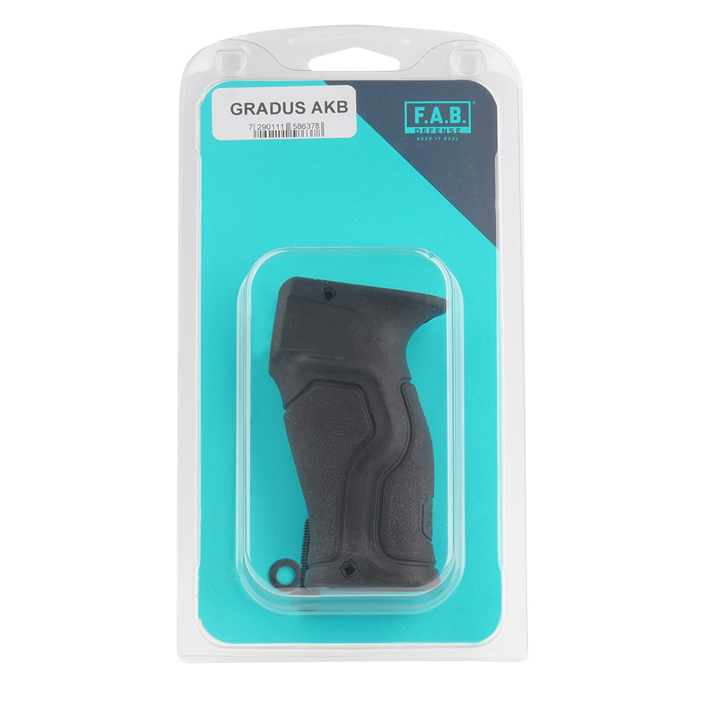 Chwyt pistoletowy Gradus wyróżniający się ergonomiczną i antypoślizgową konstrukcją od izraelskiej firmy FAB Defense. Chwyt pod kątem 15° rozkłada równomiernie siłę na całą powierzchnię rączki.