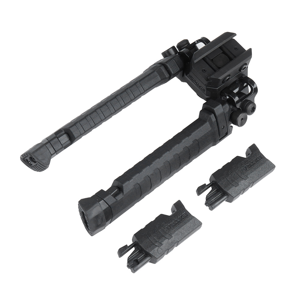 W dwójnogu zastosowano składane nogi z możliwością zablokowania w jednej z czterech pozycji oraz z regulacją wysokości w zakresie 7'' - 10'', którą jeszcze można zwiększyć za pomocą 5-centymetrowych przedłużek. W górnej części nóg umieszczono mechanizmy blokujące ustawienie wysokości, dzięki czemu nie występuje ryzyko przypadkowego złożenia w trakcie użytkowania. Nogi w dwójnogu posiadają gumowe, antypoślizgowe stopki zapewniające stabilność. Stopniowa blokada umożliwia nachylenie nóg pod kątem 0°, 45°, 90° i 135°.