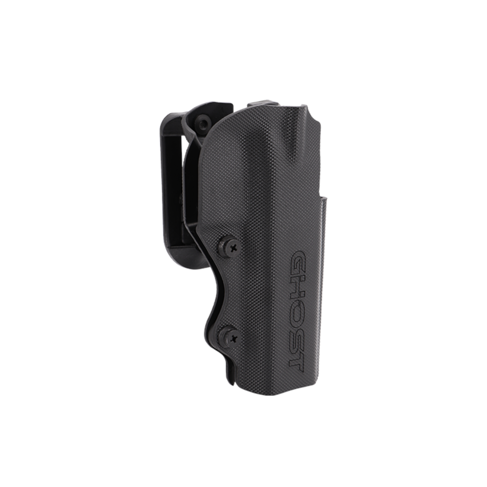 GHOST Civilian to nowa wersja popularnej kabury z linii Conceal Carry, wyposażona w montaż do przewlekania na pasie.  Kabura ta ma uniwersalne zastosowanie - świetnie sprawdza się podczas treningów strzeleckich, dynamicznych konkurencji strzeleckich oraz w codziennym przenoszeniu broni. Polecane dla strzelców PIRO/IDPA. Wykonana z wytrzymałego polimeru technicznego, kabura jest formowana termicznie w zależności od modelu pistoletu. Broń jest mocowana "na wcisk", a do regulacji siły wyciągania z kabury służą dwie śruby umieszczone w dolnej części.