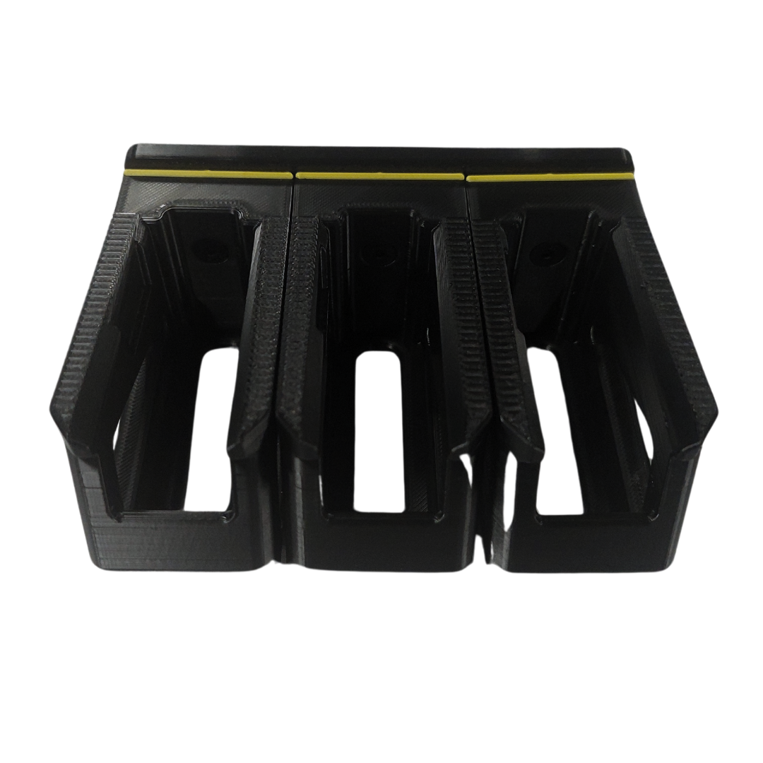 HoldmyMag to wysokiej jakości uchwyt, zaprojektowany z myślą o bezpiecznym i wygodnym przechowywaniu oraz szybkim dostępie do magazynków. Model ten jest kompatybilny ma trzy sloty na magazynki do AR15.