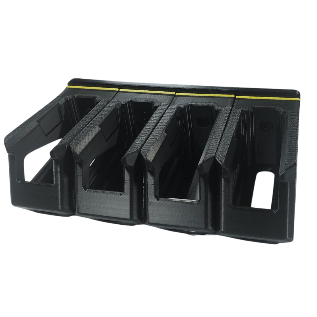 HoldmyMag to wysokiej jakości uchwyt, zaprojektowany z myślą o bezpiecznym i wygodnym przechowywaniu oraz szybkim dostępie do magazynków. Model ten jest kompatybilny ma cztery sloty na magazynki do AR15.