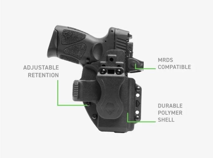 Kabura Photon od Alien Gear została zaprojektowana z myślą o maksymalnym bezpieczeństwie przenoszenia oraz szybkim i pewnym dobyciu broni. Alien Gear, firma znana z wysokiej jakości swoich produktów, używa do produkcji tej kabury zaawansowanego polimeru, który przewyższa wytrzymałością standardowy kydex. Wszystkie kluczowe elementy pistoletu, takie jak mechanizm spustowy i okno wyrzutowe, są w tej kaburze starannie chronione. Dzięki symetrycznej konstrukcji, kabura Photon jest idealna zarówno dla osób lewo-, jak i praworęcznych.