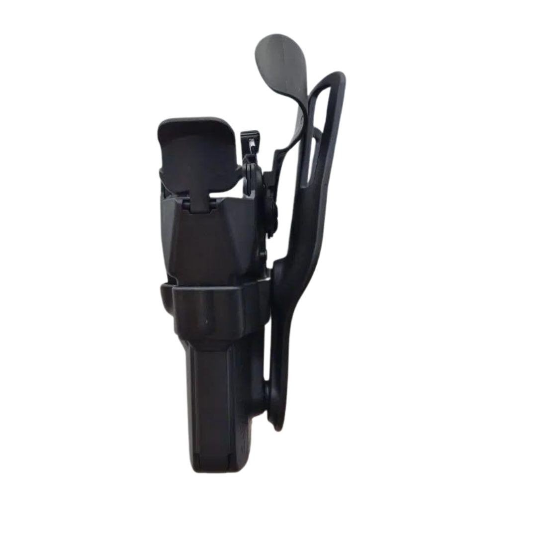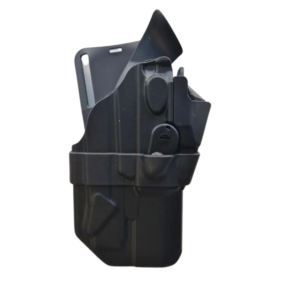 Kabura Safariland® przeznaczona do pistoletu WALTHER PDP 4,5″ wyposażonych w celowniki optyczne, praktycznie wszystkie modele renomowanych firm m.in. Shield, Trijicon, Holosun, AimPoint, SigSauer, itd. Do użytku w systemie tactical/duty holster (taktyczna/służbowa). Przeznaczona do pistoletów wyposażonych w oświetlenie taktyczne STREAMLIGHT TLR 7A. To najnowszy model kabury taktycznej wyposażony w ruchomą osłonę zabezpieczającą celownik optyczny Naszej broni.