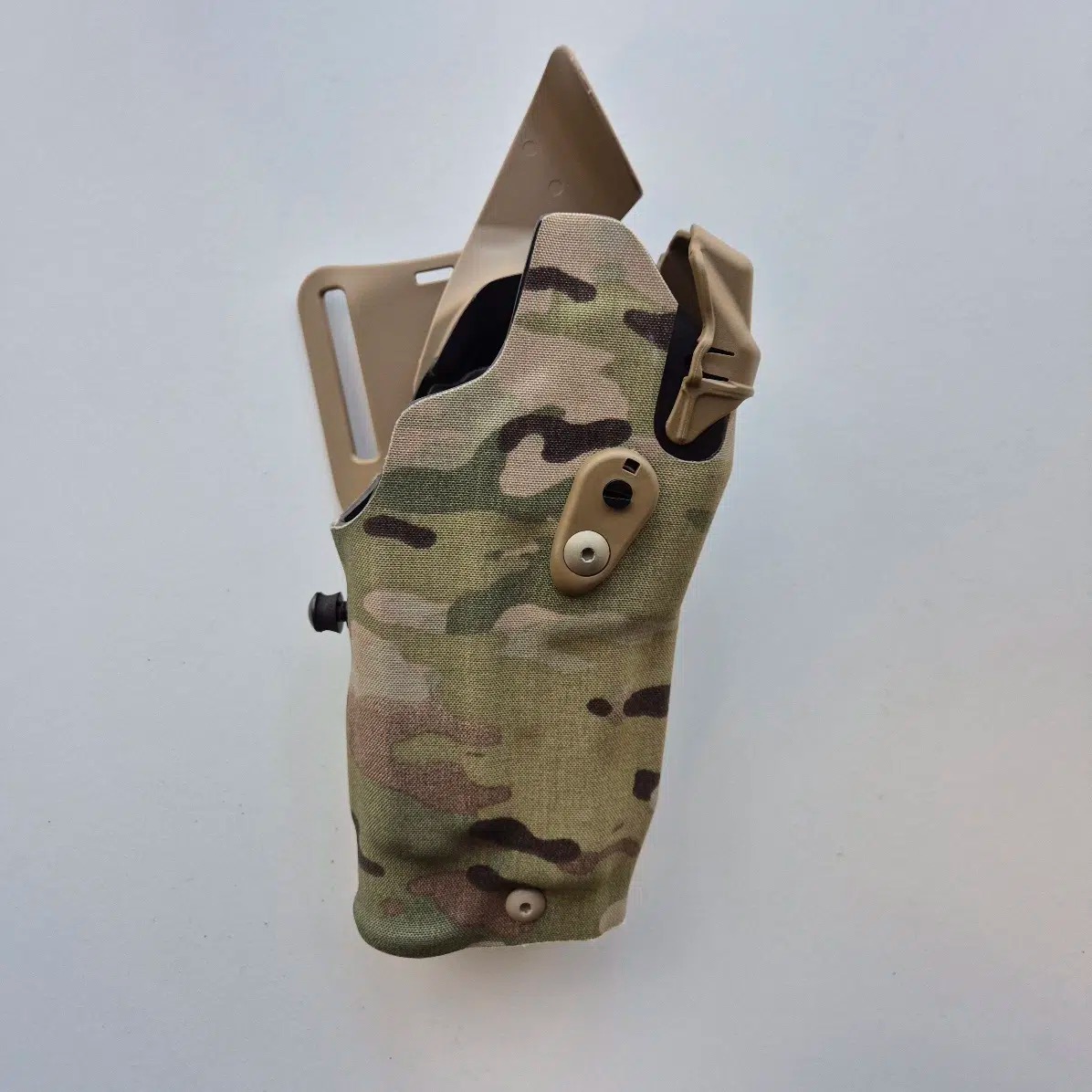 Ta taktyczna kabura jest kompatybilna z celownikami optycznymi renomowanych firm, takich jak Shield, Trijicon, Holosun, AimPoint i SigSauer, oraz z oświetleniem taktycznym SureFire i Streamlight (m.in. TLR1, X300). Najnowszy model kabury taktycznej Safariland® wyposażony jest w ruchomą osłonę chroniącą celownik optyczny oraz uniwersalny system montażu do pasa UBL.