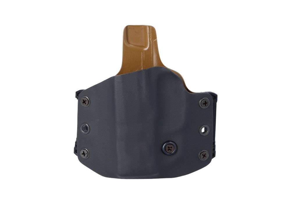 Model jest kompatybilny z kolimatorami montowanymi na zamku (z wyłączeniem wskazanych poniżej), a neutralny kąt nachylenia umożliwia szybkie dobycie broni i łatwe ponowne kaburowanie. Regulowana śruba retencyjna pod kabłąkiem spustu pozwala dopasować siłę trzymania broni do własnych preferencji. Niski sweat shield chroni zarówno broń, jak i użytkownika, nie powodując dyskomfortu.