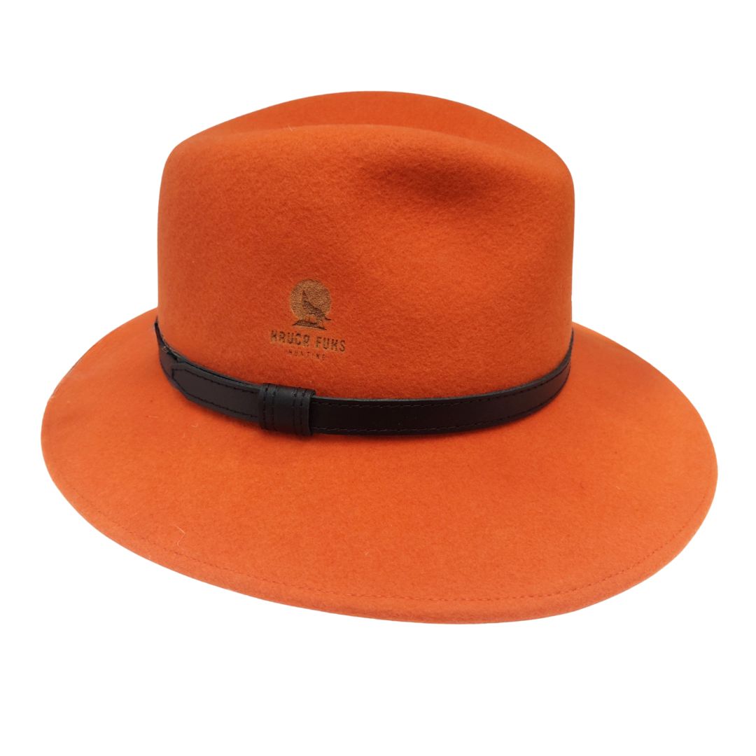 Skórzana obwódka nadaje mu subtelnej elegancji, a tłoczone logo podkreśla jego unikalny charakter. Pomarańczowy odcień zwiększa widoczność w terenie, dlatego kapelusz doskonale sprawdzi się zarówno podczas polowań zbiorowych, jak i w codziennych, outdoorowych stylizacjach.