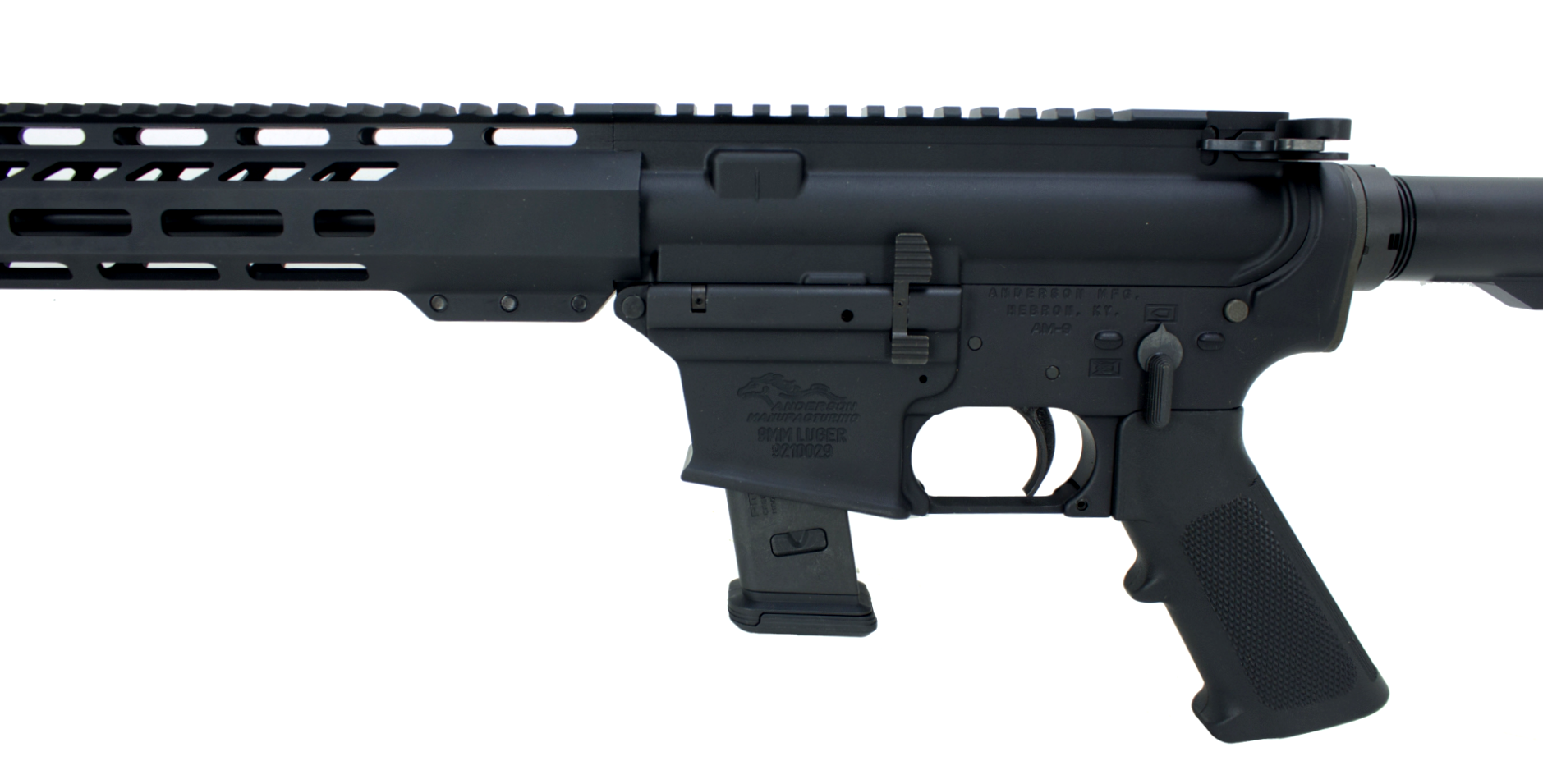 Karabin samopowtarzalny firmy Anderson, zbudowany w oparciu o system AR. Broń strzela popularnym i tanim nabojem 9 mm Luger. Karabinek charakteryzuje się lufą długości 406,4 mm. Pozwala to na pełne dopalenie ładunku prochowego i wzrost energii kinetycznej pocisku. Skok gwintu w lufie wynosi 1:10 cali. Lufę wykonano z wytrzymałej stali marki 4150, z dużą zawartością chromu, niklu i wanadu. Zamek wytworzony został ze stali marki 9130. Firma Anderson zasłynęła dzięki opatentowanemu procesowi RF85. Anderson AM-9 przeznaczony jest do konkurencji sportowych PCC.