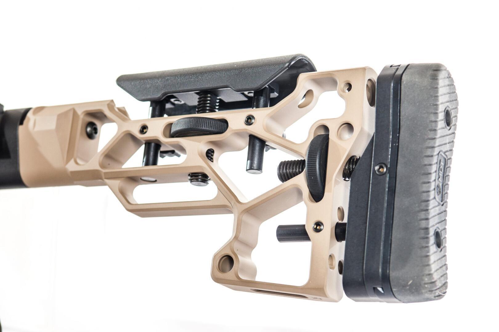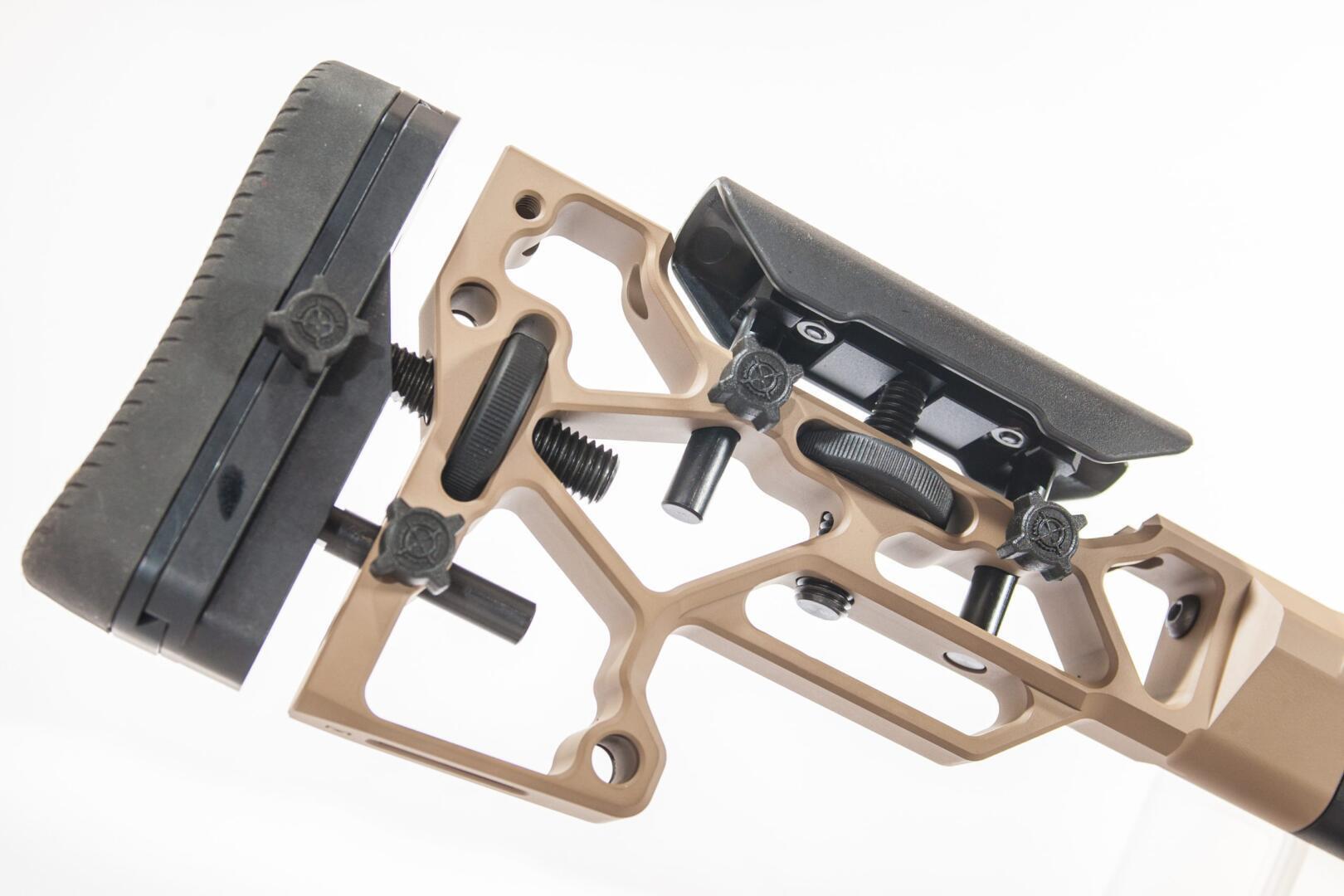 LSS-XL Gen2 pozwala przekształcić broń w bardzo uniwersalny karabin, umożliwiając regulację ergonomii za pomocą regulowanej baki i chwytów AR-15.