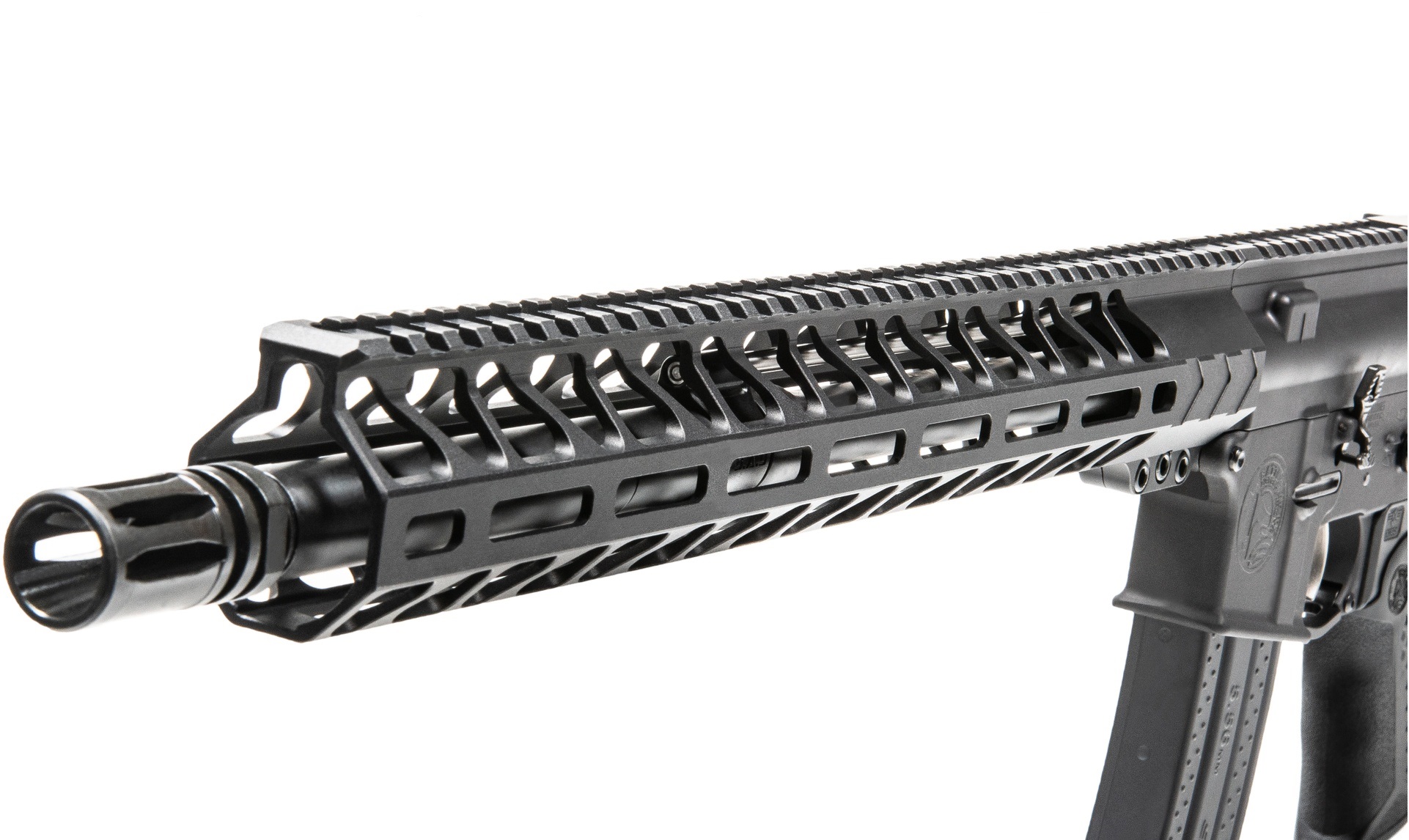 Seria broni palnej BATTLEARMS® WORKHORSE® została stworzona z myślą o intensywnym i ciężkim użytkowaniu. Jest specjalnie zbudowany z lotniczego kutego aluminium WORKHORSE® 7075-T6. Posiada wolno pływające i łoże z punktami mocowania M-LOK w pozycjach na godzinie 3, 6 i 9. Na godzinie 12 znajduje się pełnowymiarowa szyna na akcesoria Picatinny. Każda jednostka jest wyposażona w lufę ze stali chromowo-molibdenowej 4150 azotowana na czarno, co zapewnia jej trwałość i celność. Każda lufa jest indywidualnie dopasowywana do zamka wykonanego ze stali 9310 co zapewnia najwyższą niezawodność i łatwość czyszczenia. Przyjrzyj się trochę bliżej, a przekonasz się, że te karabiny to nie pierwsze lepsze ARy. Jest wyposażony w liczne ulepszone komponenty, takie jak gładki spust z niklu z teflonu, ulepszone zwalnianie magazynka, ulepszone kołki do mocowania uppera, jednoczęściowy zatrzask magazynka, ulepszony zatrzask zamka, regulowany w trzech pozycjach chwyt pistoletowy. Seria WORKHORSE® oferuje niesamowitą jakość.