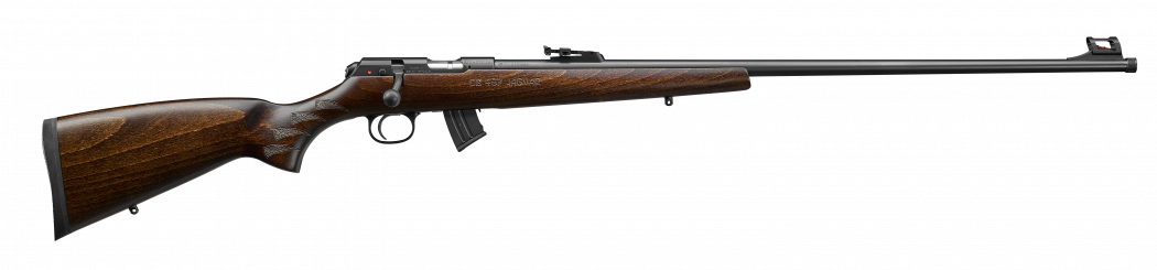 CZ 457 Jaguar kal. 22LR to model karabinek bocznego zapłonu, w którym zastosowano długą lufę 726 mm, regulowane przyrządy celownicze z nastawą w zakresie 25-200 m oraz bukowe łoże z motywem ozdobnym w postaci śladu pazurów jaguara.