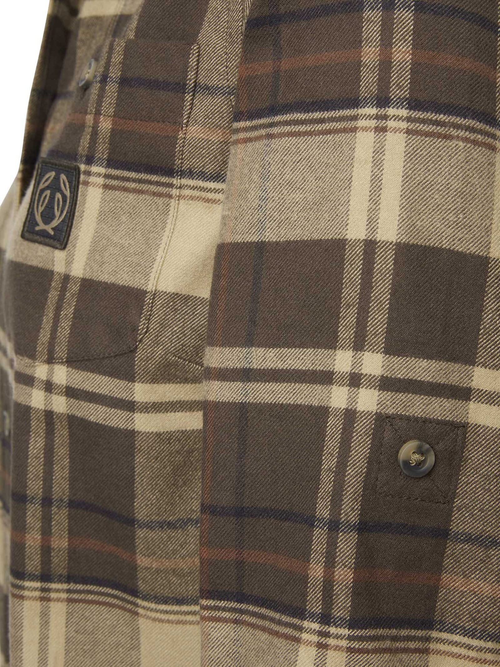 Koszula Flanelowa Damska Heron wykonana jest z grubego, delikatnie szczotkowanej flaneli z organicznej bawełny. Ma ona klasyczny, regularny krój, czyli prosty. Koszula Flanelowa Damska Heron posiada dwie kieszenie na piersiach z guzikami, klasyczną listwę oraz guziki imitujące poroże. Dodatkowo wyposażona jest w tzw. "butcher's button" - inteligentny guzik na górnej części rękawa oraz dodatkową dziurkę na guzik w mankiecie, dzięki czemu rękaw łatwo można podwinąć, kiedy jest to potrzebne.