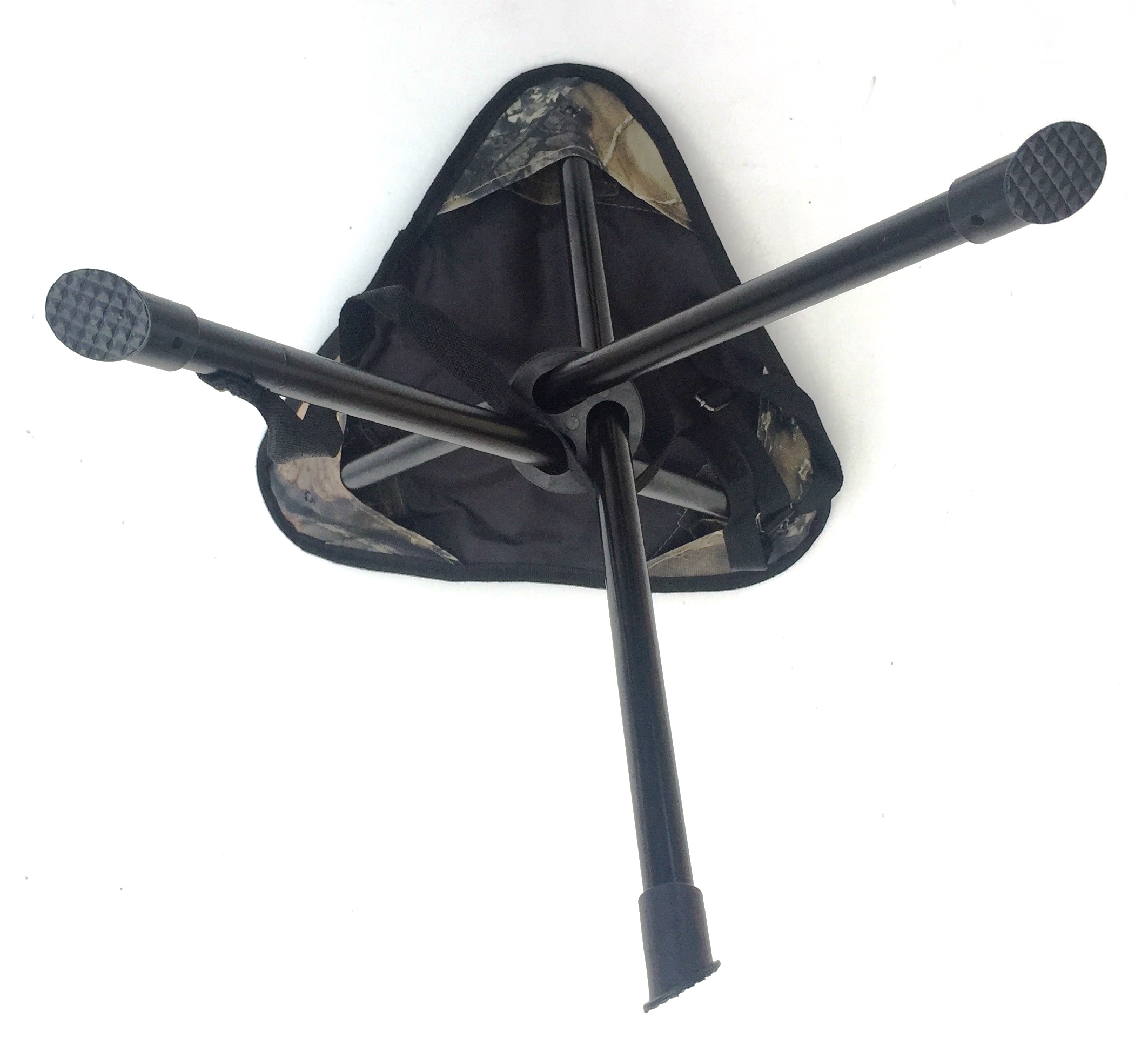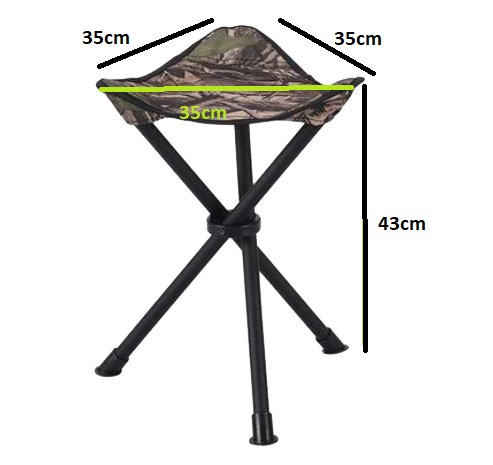Krzesełko w kolorze czarnym z siedziskiem w kolorze kamuflaż leśny.