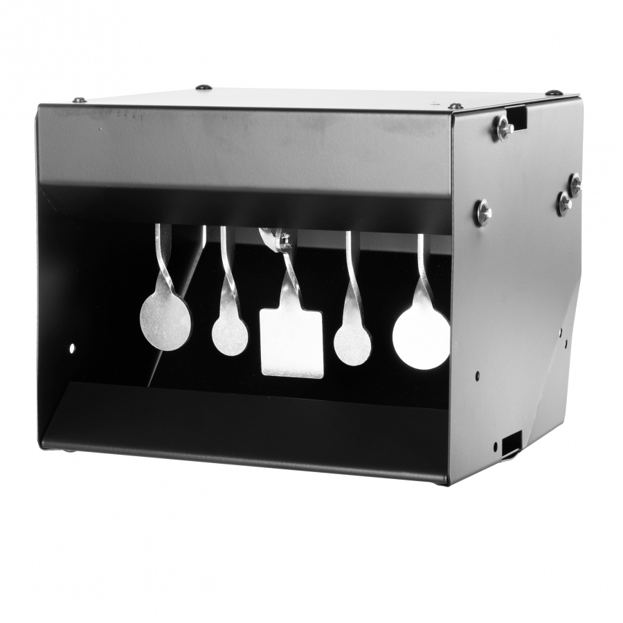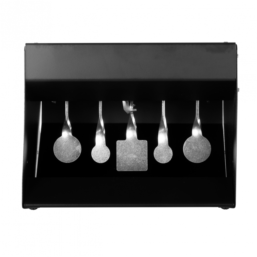 Jeśli znudziło Ci się strzelanie do papierowych tarcz, warto sięgnąć po kulochwyt z celami wahadłowymi. Kulochwyt wydajnie wyłapuje śruty, chroni środowisko naturalne i zapobiega także rykoszetowaniu pocisków, dzięki czemu możemy stworzyć bezpieczną strzelnicę nie tylko w przydomowym ogrodzie lub podwórku, ale także w pomieszczeniu mieszkalnym lub gospodarczym. Kulochwyt ma 4 cele reaktywne w postaci metalowych płytek, które po celnym trafieniu chowają się wewnątrz obudowy. Metalowa zapadka utrzymuje cele w górnym położeniu aż do chwili trafienia w środkowy cel, odpowiadający za zdalne „zerowanie” kulochwytu. Taka funkcjonalność powoduję, że strzelanie do kulochwytu spinner dostarcza wielu pozytywnych emocji i jest znacznie wygodniejsze, ponieważ w odróżnieniu od tradycyjnych celów reaktywnych, nie musimy po każdym strzelaniu ręcznie reaktywować kulochwytu.