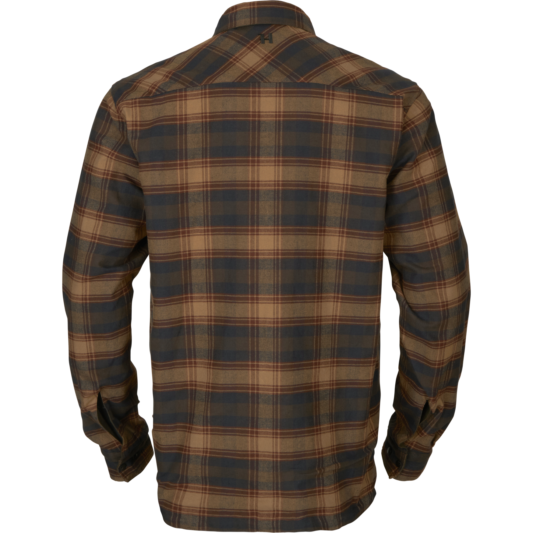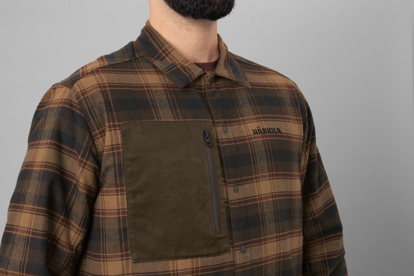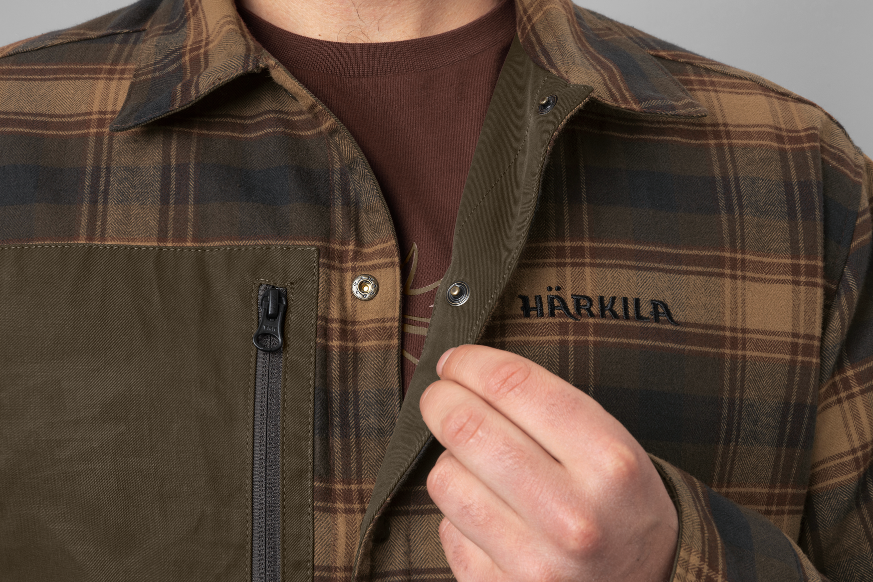 Eirik to dwustronna kurtka koszulowa w klasycznym stylu drwala. Ma atrakcyjne kolory inspirowane lasem z jednej strony i jednolitą zieleń z drugiej. Dwustronność zwiększa jego użyteczność, ponieważ nadaje się zarówno do polowania, jak i innych zajęć rekreacyjnych. Po stronie wzoru w kratę znajduje się kieszeń na piersi z pionowym zamkiem błyskawicznym. A po zielonej stronie znajdują się dwie kieszenie na piersi, z których jedna zapinana jest na zamek. Eirik to kurtka, która równie dobrze pasuje do pary dżinsów, jak i do spodni myśliwskich.