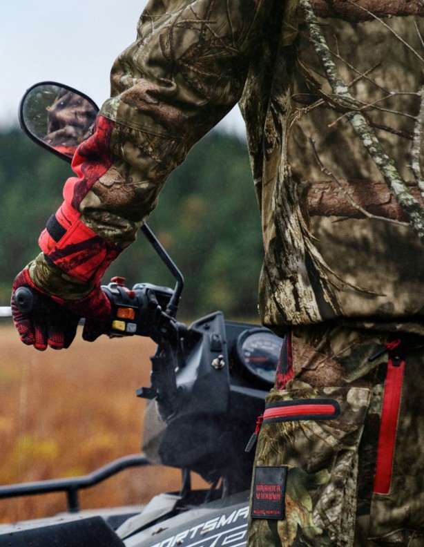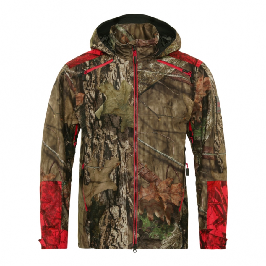 Kurtka Moose Hunter, została wykonana z mieszanki materiału w kamuflażu Mossy Oak® Break-Up Country® oraz kamuflażu Mossy Oak® Red. Mieszanka ta pomaga on ukryć myśliwego przed zwierzyną, ale jednocześnie zapewnia wysoki poziom widoczności dla innych myśliwych podczas polowania.
