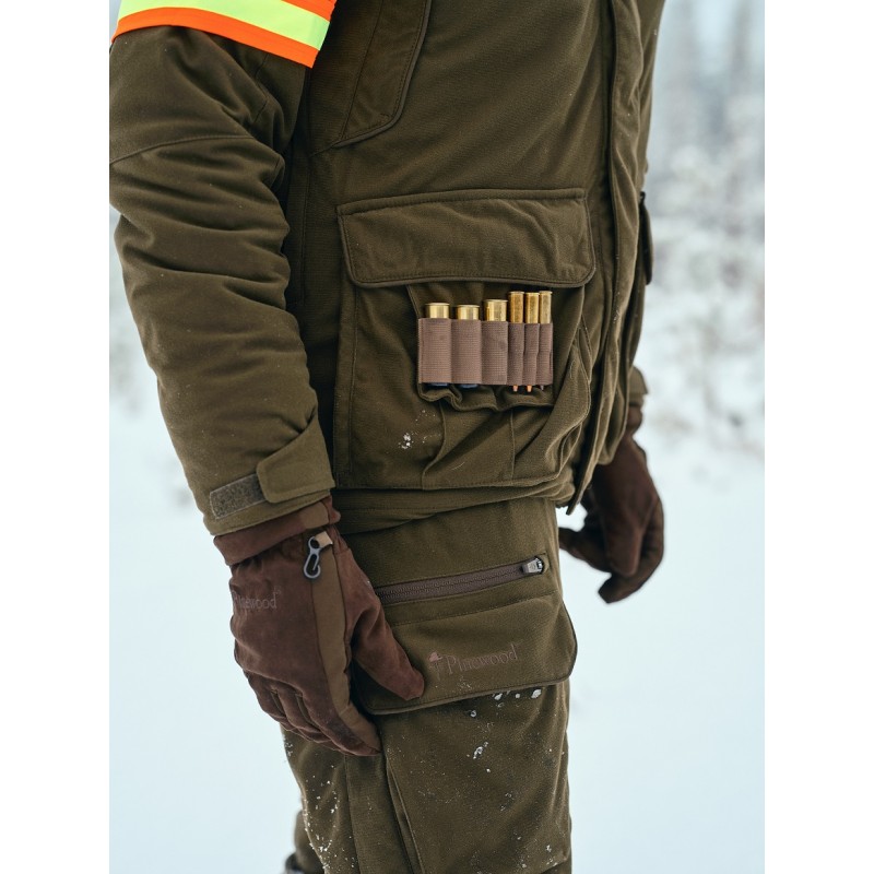 Ta kurtka ma kilka funkcji dostosowanych do myśliwego, takich jak tylną kieszeń zapinaną na ekspresy i łatwą w czyszczeniu oraz kieszeń na GPS i kieszenie na radio umieszczone po każdej stronie, aby pasowały zarówno do strzelców leworęcznych, jak i praworęcznych.