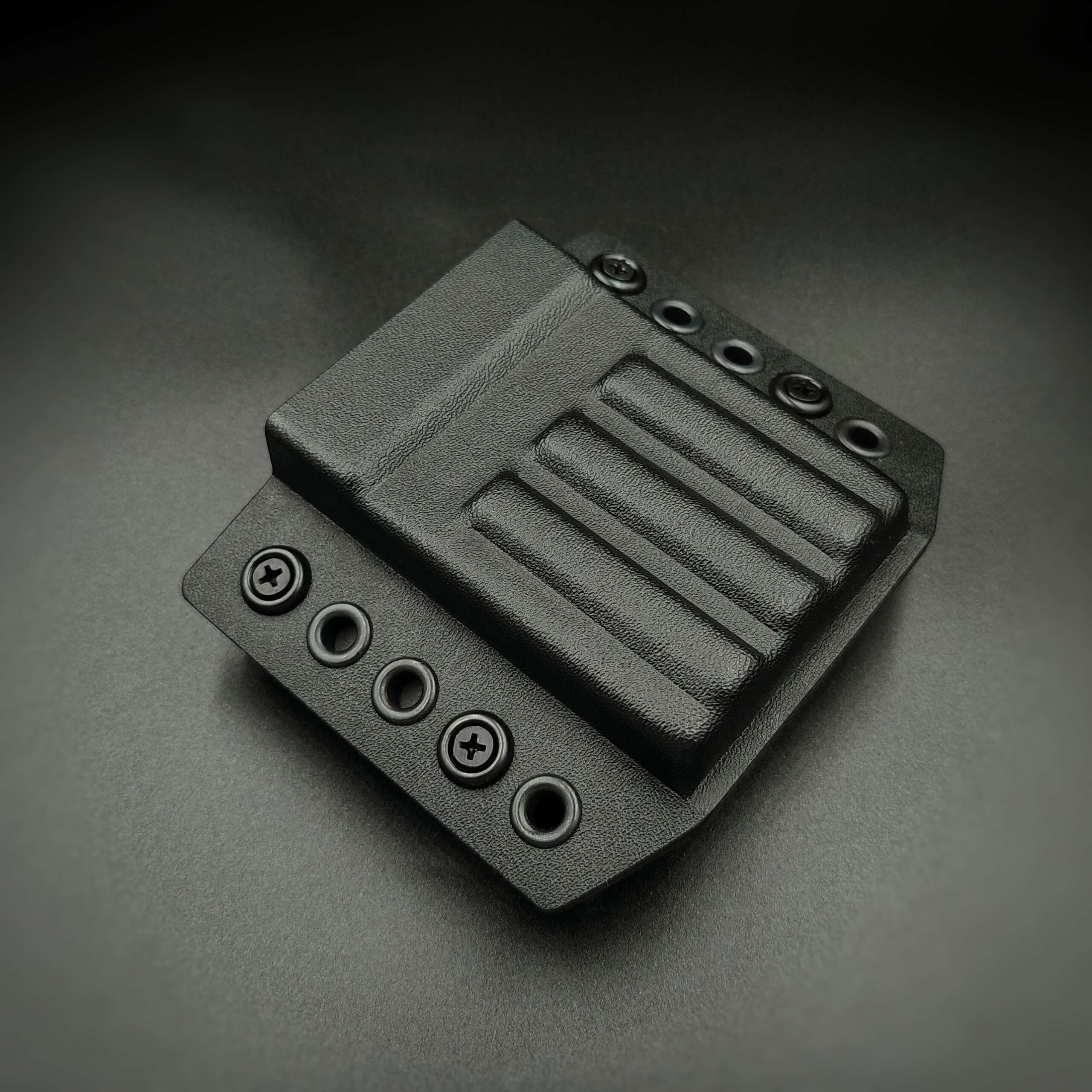 Magazynek jest utrzymywany blisko środka ciężkości strzelca, co ułatwia intensywny ruch z przenoszonym oporządzeniem. Ładownica jest montowana na przelotkach dopasowanych do szerokości pasa. Głębokość ładownicy została tak dopasowana, aby kydex ściskał magazynek tylko za część umieszczoną w gnieździe karabinka. Dzięki temu ładownica akceptuje wszystkie magazynki (także PMAG Gen3). Klasyczny design bardziej zakrywa korpus magazynka.