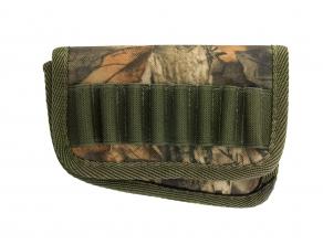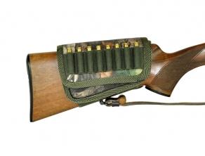 Elastyczna ładownica na kolbę wykonana z codury w wzór kamuflażu. Rzepy umieszczone na ładownicy umożliwiają błyskawiczną wymianę zasobnika na amunicję. Ładownica posiada odpinany zasobnik na 8 kul