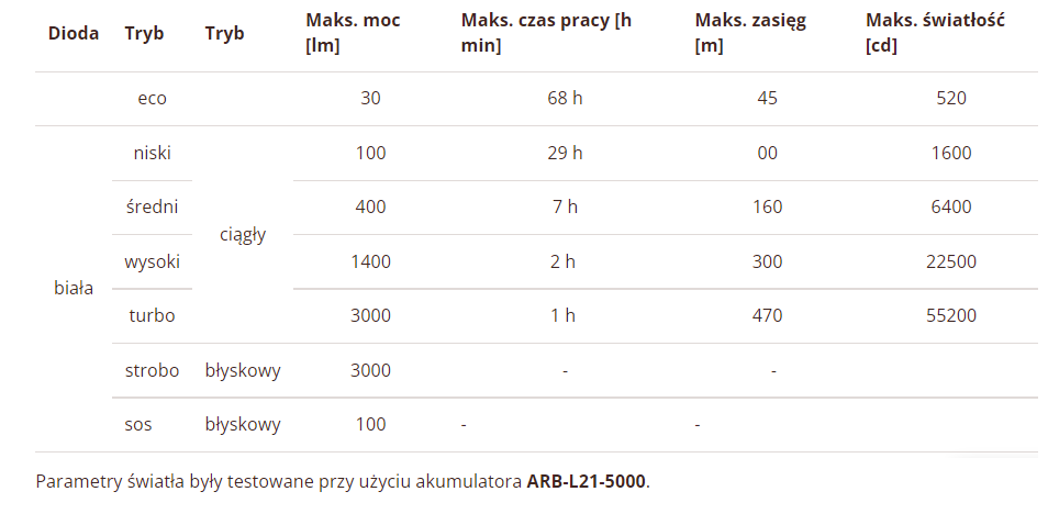 Fenix C7 zasilany jest za pomocą akumulatora 21700 o pojemności 5000 mAh. ARB-L21-5000U to obecnie najbardziej pojemne ogniwo do zasilania latarek, zapewniające znacznie dłuższą pracę oraz stałą wydajność prądową.