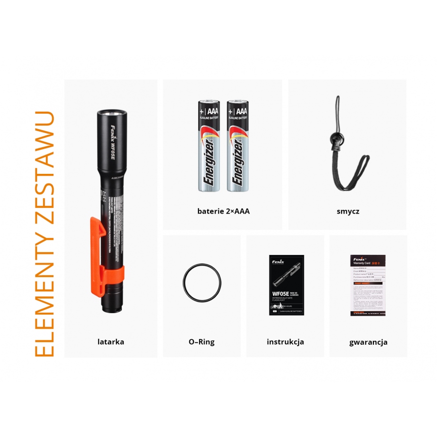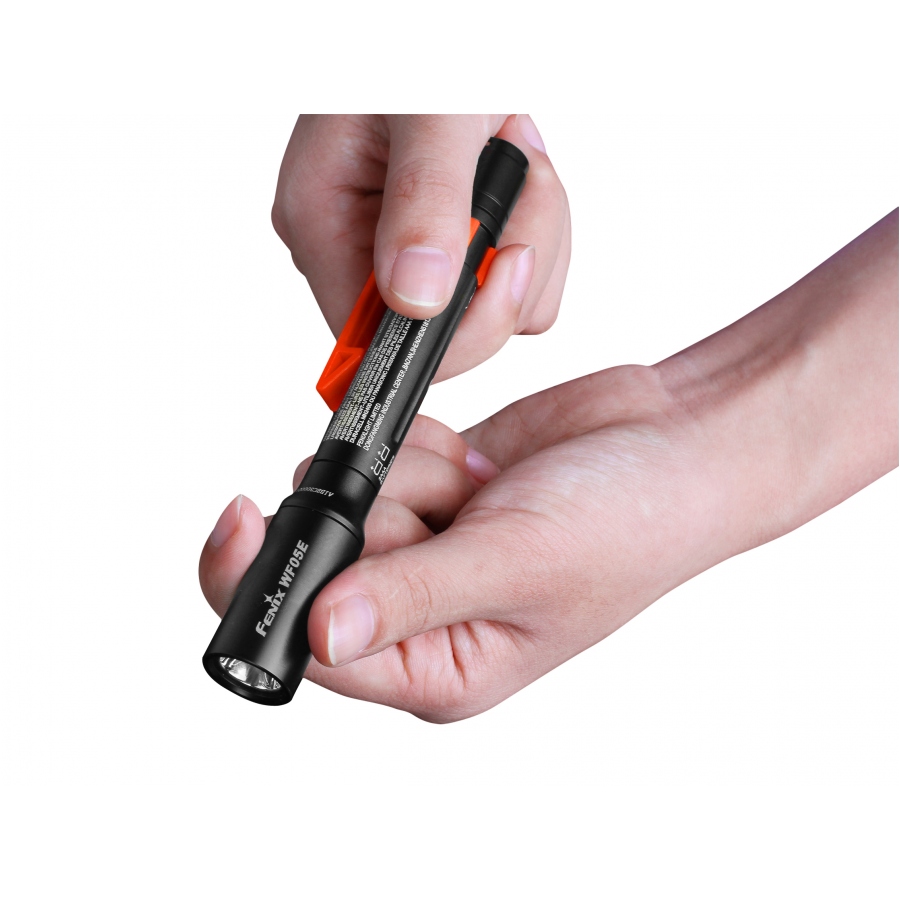 Fenix WF05E to pierwsza latarka iskro bezpieczna marki Fenix, posiadająca certyfikat IECEx, ATEX i SGS, dopuszczający ją do użytku w najbardziej niebezpiecznych zagrożonych wybuchem strefach 1, 2, 21 oraz 22.