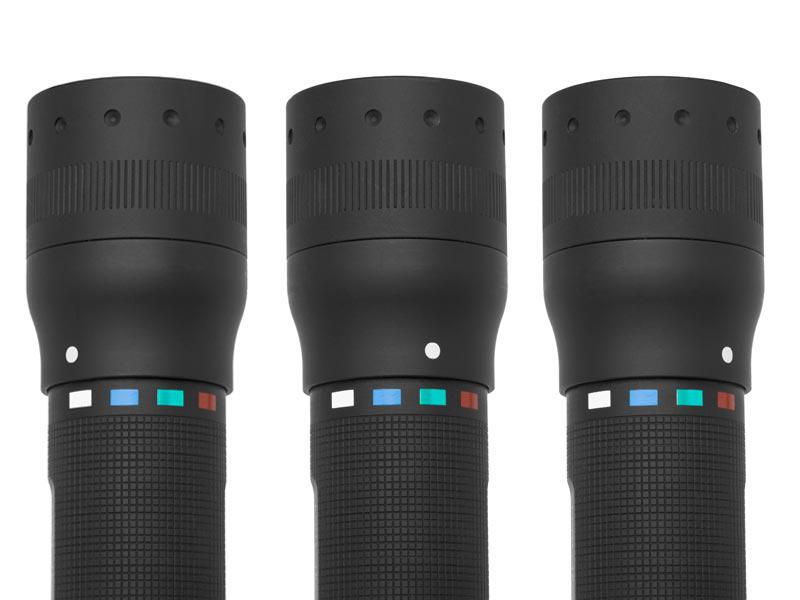 Jakość świecenia oferowana przez LED LENSER® P7QC jest wyjątkowa, co stwarza nowe możliwości jej zastosowania. Kolorowe światło jest dziś niezbędne – np. do sygnalizacji w ruchu ulicznym i szynowym oraz w wojsku. Służy ono pomocą myśliwym, pilotom i służbom specjalnym, lecz również umożliwia po prostu dobre widzenie nocą. Nowa latarka LED LENSER® P7QC – nazwa jest skrótem od Quattro Color – świeci czterema kolorami (czerwony, zielony, niebieski + biały) i nadaje się do wielu zastosowań w różnych grupach docelowych. Aby zmienić kolor światła, wystarczy przestawić pokrętło do ustawiania trybu pracy – podczas używania latarki jak również, gdy jest ona wyłączona. LED LENSER® P7QC o mocy białego światła wynoszącej 220 lumenów może także z powodzeniem służyć jako zwykła latarka. Dzięki Smart Light Technology (SLT) można w każdym kolorze indywidualnie ustawiać stopnie świecenia i funkcje migania. Nowy Prism-Diffusor zapewnia optymalny rozsył światła we wszystkich możliwych do ustawienia długościach fali.