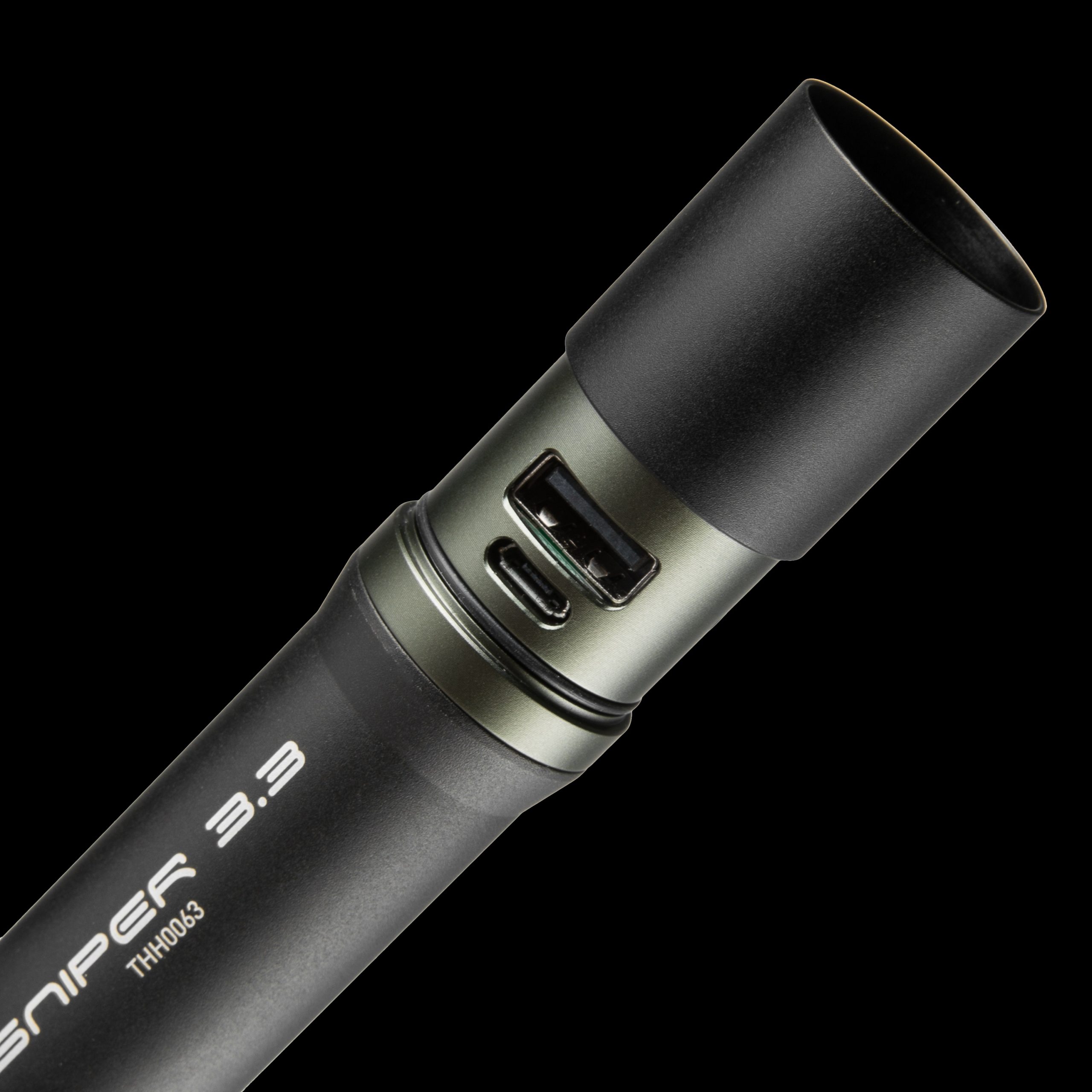 Sniper 3.3 to ładowalna latarka ręczna wyposażona w Smooth Focus System, który pozwala użytkownikowi płynnie regulować szerokość wiązki światła. Emitowane światło 1020 lumenów zapewnia zasięg nawet do 205 metrów. Latarka została wykonana z wytrzymałego aluminium lotnicznego, a przeprowadzone testy potwierdzają jej wysoki stopień wodo- i pyłoodporności w klasie IP66. Wydajny akumulator umożliwia działanie Sniper 3.3 aż do 50 godzin, a funkcja Power Bank pozwala na ładowanie urządzeń elektronicznych.