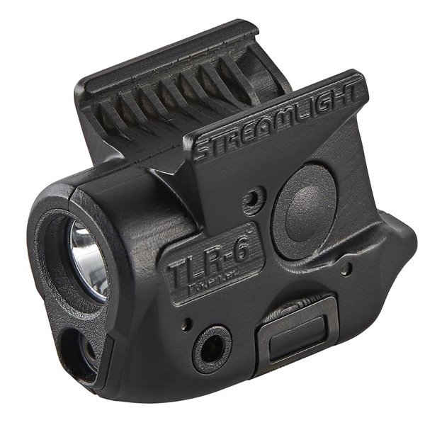Streamlight TLR-6 to kompaktowa latarka taktyczna do broni, wyposażona w białą diodą LED i zintegrowany, czerwony laser celowniczy 640/660 nm. Z możliwością wymiany baterii bez użycia narzędzi i bez konieczności demontażu z broni oraz potrzeby ponownego ustawiania lasera. Latarka zapewnia 1 godzinę stałego czasu pracy w trybie światła podwójnego/lasera. Przeznaczona do solidnego mocowania do kabłąka spustowego na pistoletach. Trwała, odporna na uderzenia konstrukcja latarki taktycznej zapewnia klasę wodoodporności IPX4. Przebadana odporność na upadek z wysokości 1 m.