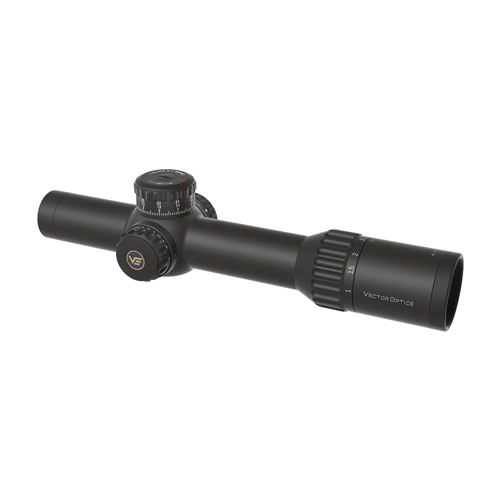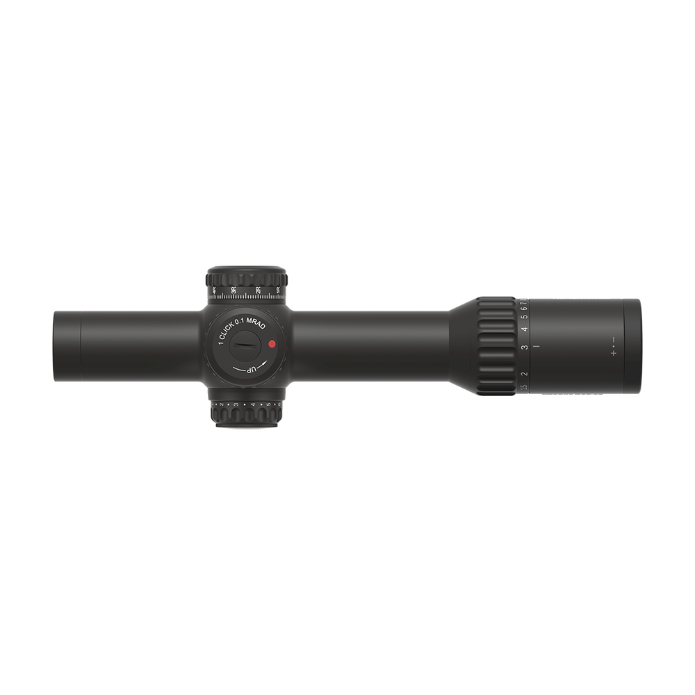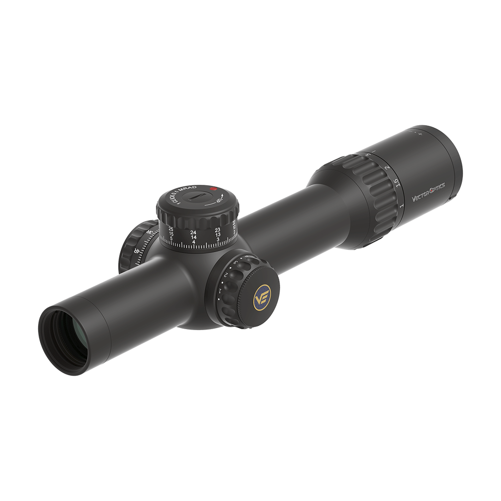 Siatka celownicza VET-CTR MIL Dot, umieszczona w pierwszej płaszczyźnie ogniskowej (FFP), dostosowuje się do powiększenia, zapewniając precyzję niezależnie od dystansu. Na powiększeniu 1x pozwala na szybkie celowanie z obu oczu, a na 10x gwarantuje dokładność niezbędną w trudnym terenie.
