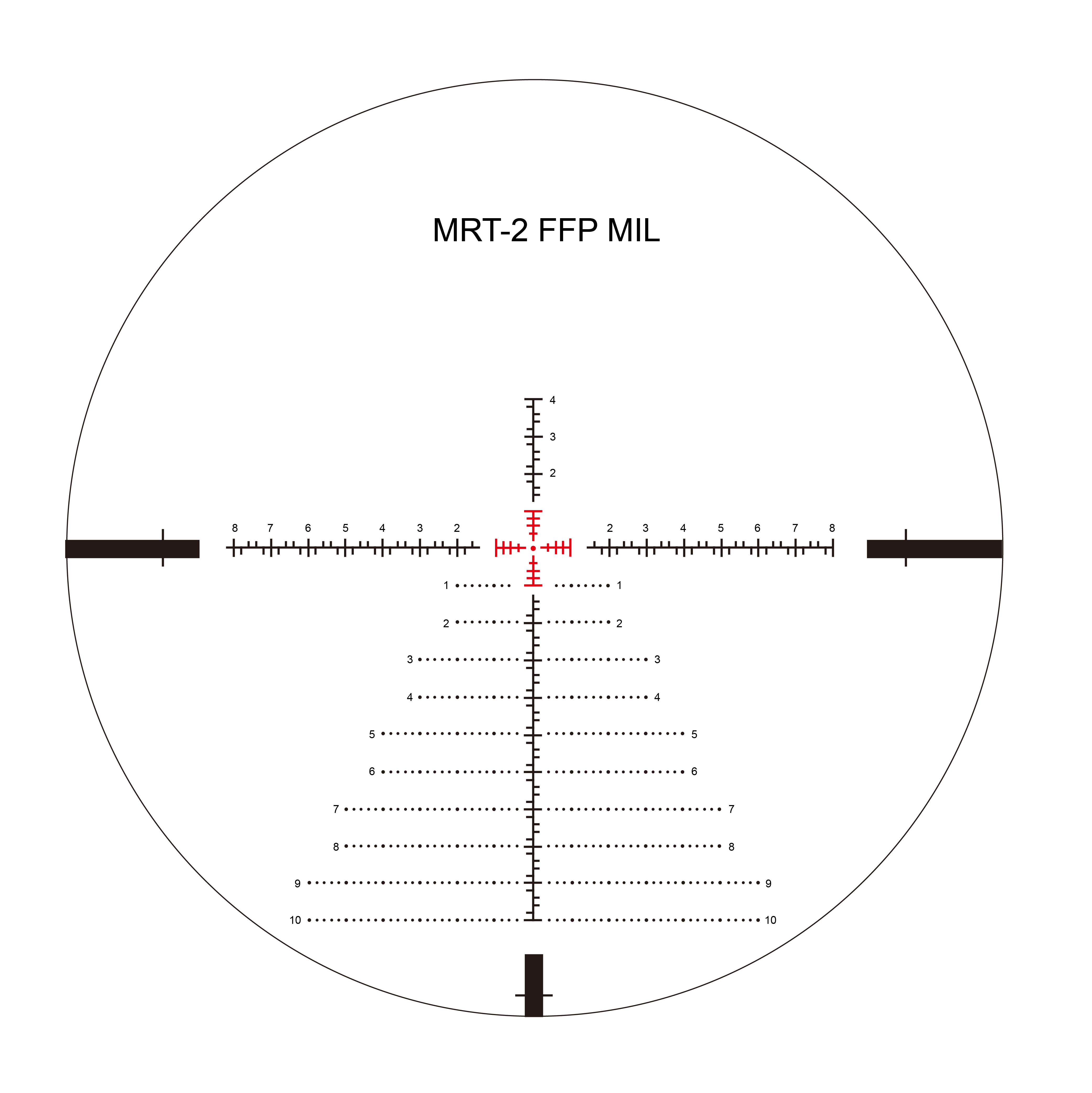 ✅ Siatka taktyczna MRT-2 w FFP – skaluje się z powiększeniem, umożliwiając dokładne pomiary i korekcje strzału.
