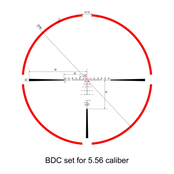 11 poziomów podświetlenia siatki w kolorze czerwonym umożliwia komfortowe celowanie w dzień i o zmierzchu, a 0,25 MOA na klik zapewnia precyzyjną i powtarzalną regulację.