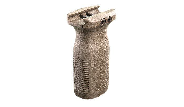 Pionowy chwyt przedni RVG® Rail Vertical Grip montowany na szynie 1913 Picatinny / RIS. Wyprodukowany z teksturowanego polimeru przez renomowaną amerykańską firmę specjalizującą się w tworzeniu akcesoriów do broni Magpul Industries.