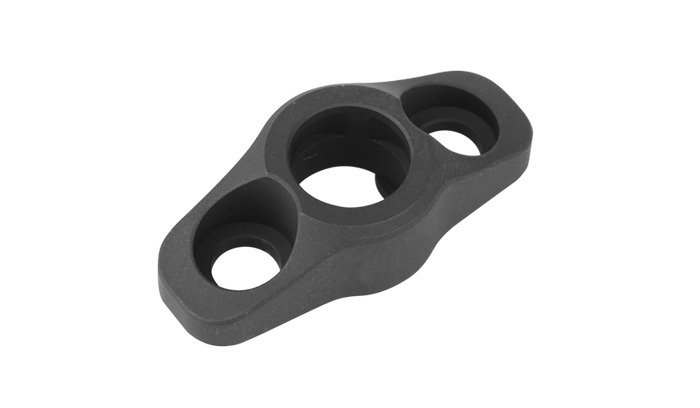 Gniazdo pozwala na stosowanie zarówno standardowego zaczepu QD jak i opatentowanego przez Magpul QDM. Profilowanie powierzchni wewnętrznej portu zapobiega niekontrolowanym obrotom i skręcaniu zawieszenia.