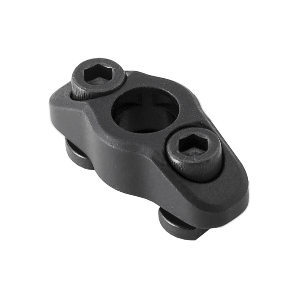 Montaż do ucha zawieszenia Quick Detach. W pełni aluminiowy, w systemie montażowym M-LOK, mocowany na dwie śruby. Otwór umożliwia zamontowanie ucha w 4 pozycjach, w obrębie 360°. Zabezpieczony pokryciem wysokiej twardości jest lekkim i solidnym elementem pod montaż zawieszenia taktycznego. Można go zamontować w standardowych otworach M-LOK, poprzez dwie śruby z nakrętkami, zawarte w zestawie.