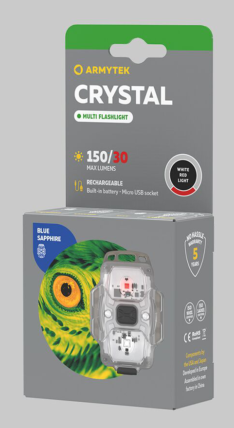 Crystal to wielofunkcyjny model z jaskrawym czerwonym światłem 30 lumenów i białym światłem 150 lumenów, który łatwo zmieści się w kieszeni. Dzięki w pełni świecącej obudowie i szerokiemu oświetleniu bocznemu 140°, latarka jest niezastąpiona w codziennym użytkowaniu w bliskiej odległości: podczas biegania, jazdy na rowerze, ale także przy drobnych naprawach czy pracach w garażu.