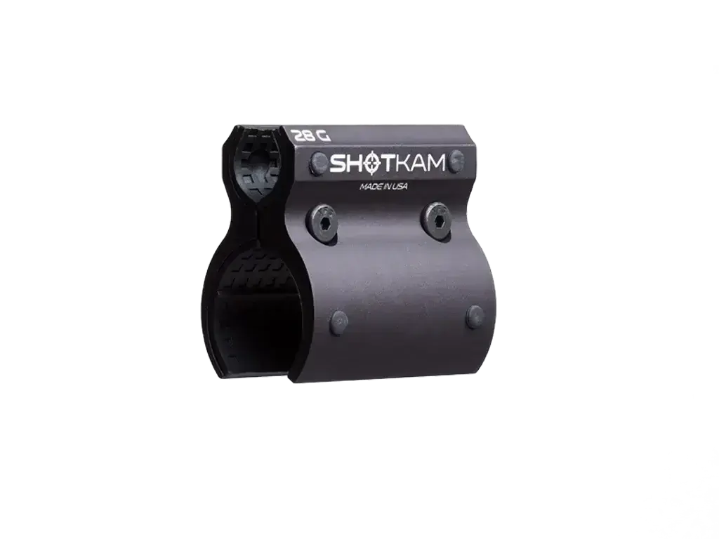 Przymocuj swój ShotKam do dowolnej lufy montażem 28.Gauge za pomocą tego dodatkowego mocowania. Aluminiowe mocowanie jest wyłożone gumowymi podkładkami, które zapewniają pewny chwyt bez pozostawiania śladów. Nie ma kontaktu metal-metal.