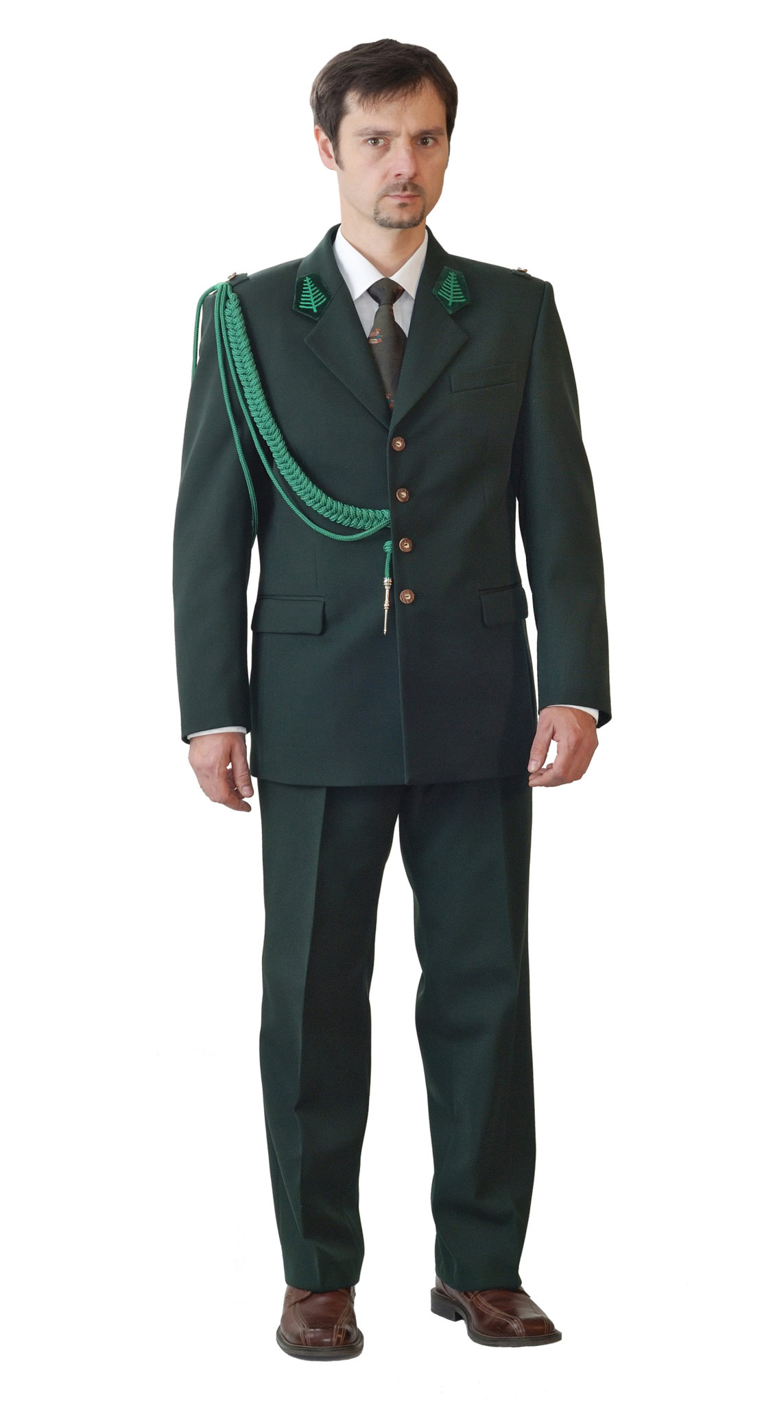 Marynarka klasyczna z boczkami, ze szwem po środku tyłu. W przodach wykonane są zaszewki dopasowujące do sylwetki. Rękawy gładkie dwuczęściowe, zakończone krytym rozporkiem z guzikiem. Ramiona marynarki opływowe, wyrównane (podwyższone) małymi wkładami. Na ramionach marynarki przyszyte są patki. Na patce przyszyty jest z wierzchu mały guzik (imitacja rogu), od spodu (tylko na prawym ramieniu) mały guzik do przypięcia sznura galowego.