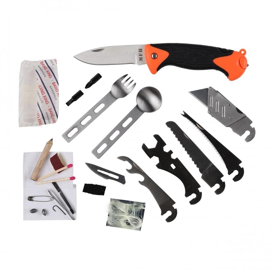 Niezależnie od tego, czy wybierasz się w teren, na ryby, biwak czy po prostu chcesz być przygotowany na nieprzewidziane sytuacje — ten 27-częściowy zestaw survivalowy MFH to praktyczne i dobrze przemyślane rozwiązanie. Zawiera najważniejsze drobne narzędzia, elementy EDC oraz akcesoria pierwszej potrzeby, spakowane w solidne, jaskrawe pudełko, które łatwo znaleźć nawet w trudnych warunkach.